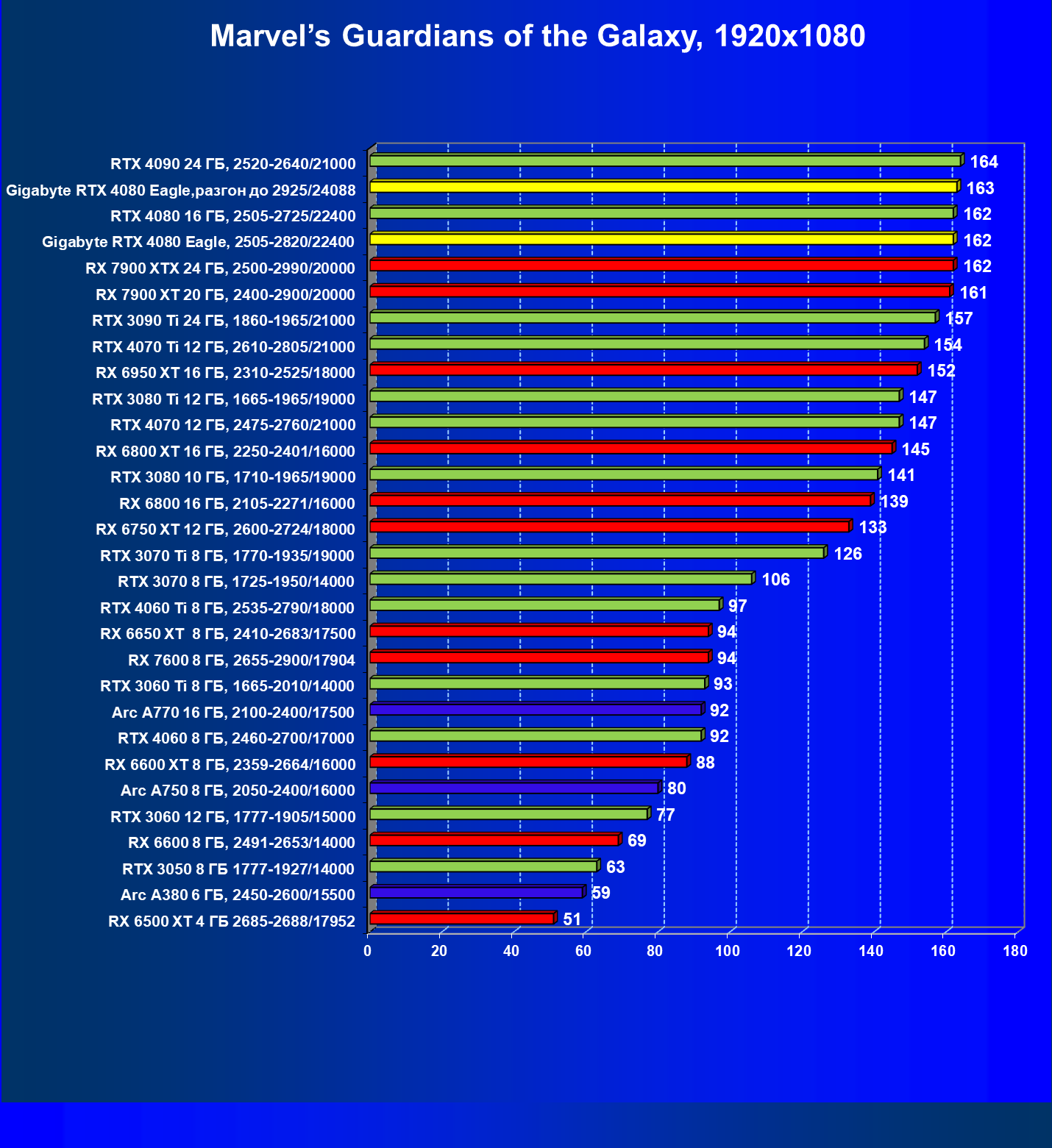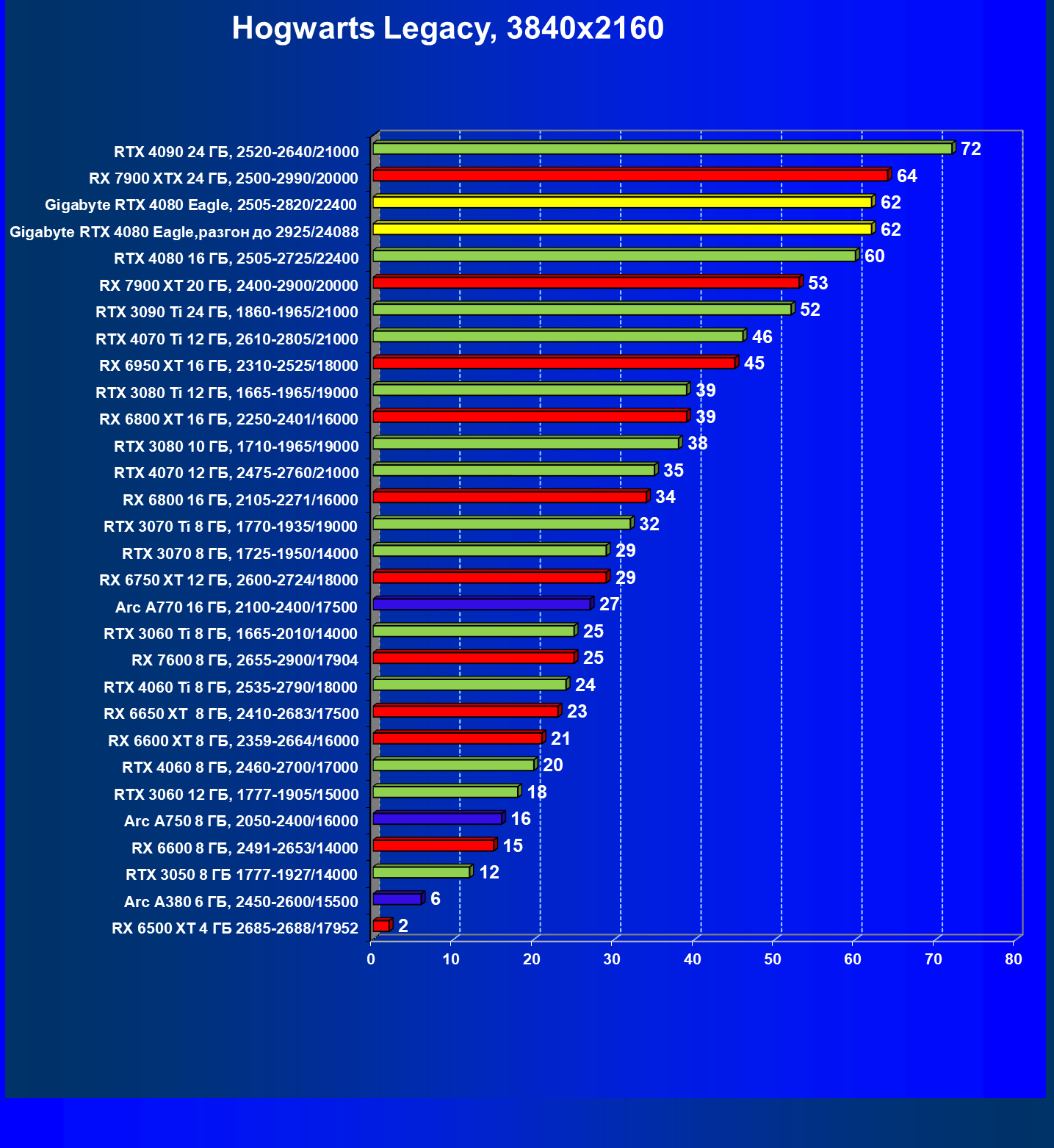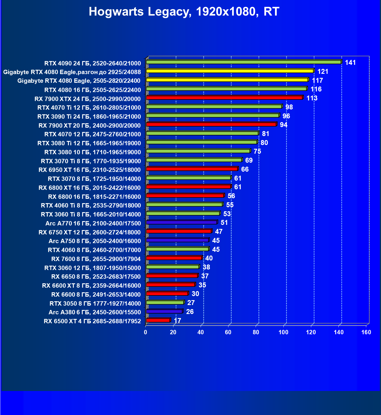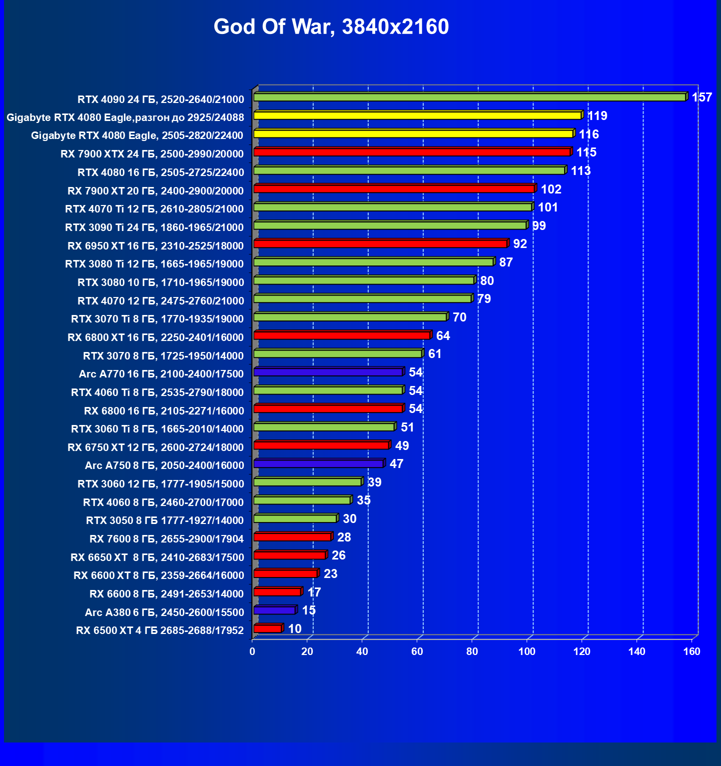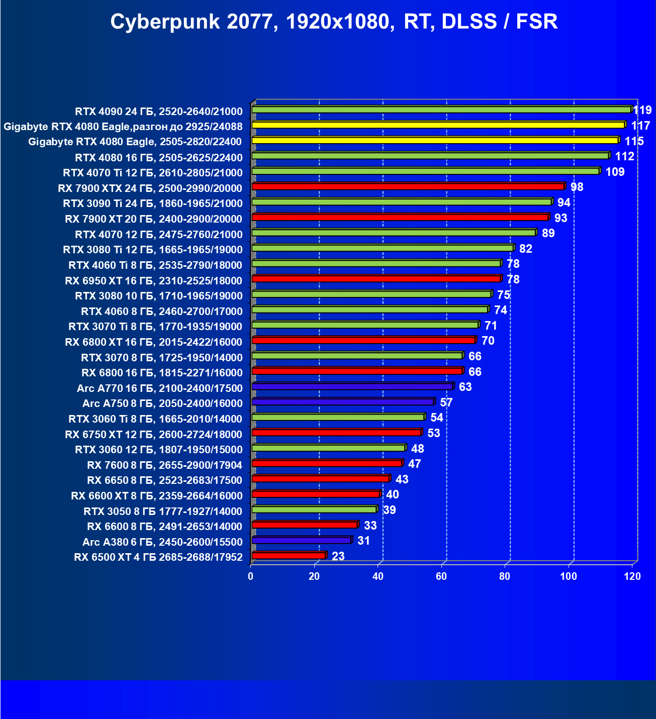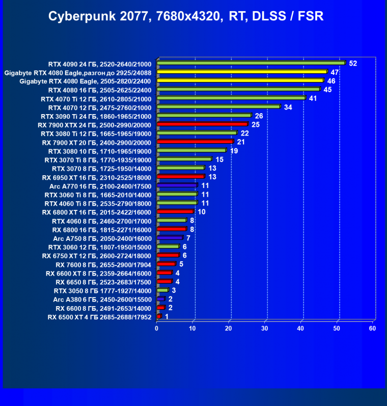 | 03 | Gigabyte RTX 4080 Eagle, 2505—2820/22400 | 1939 | 199 | 97 500 |