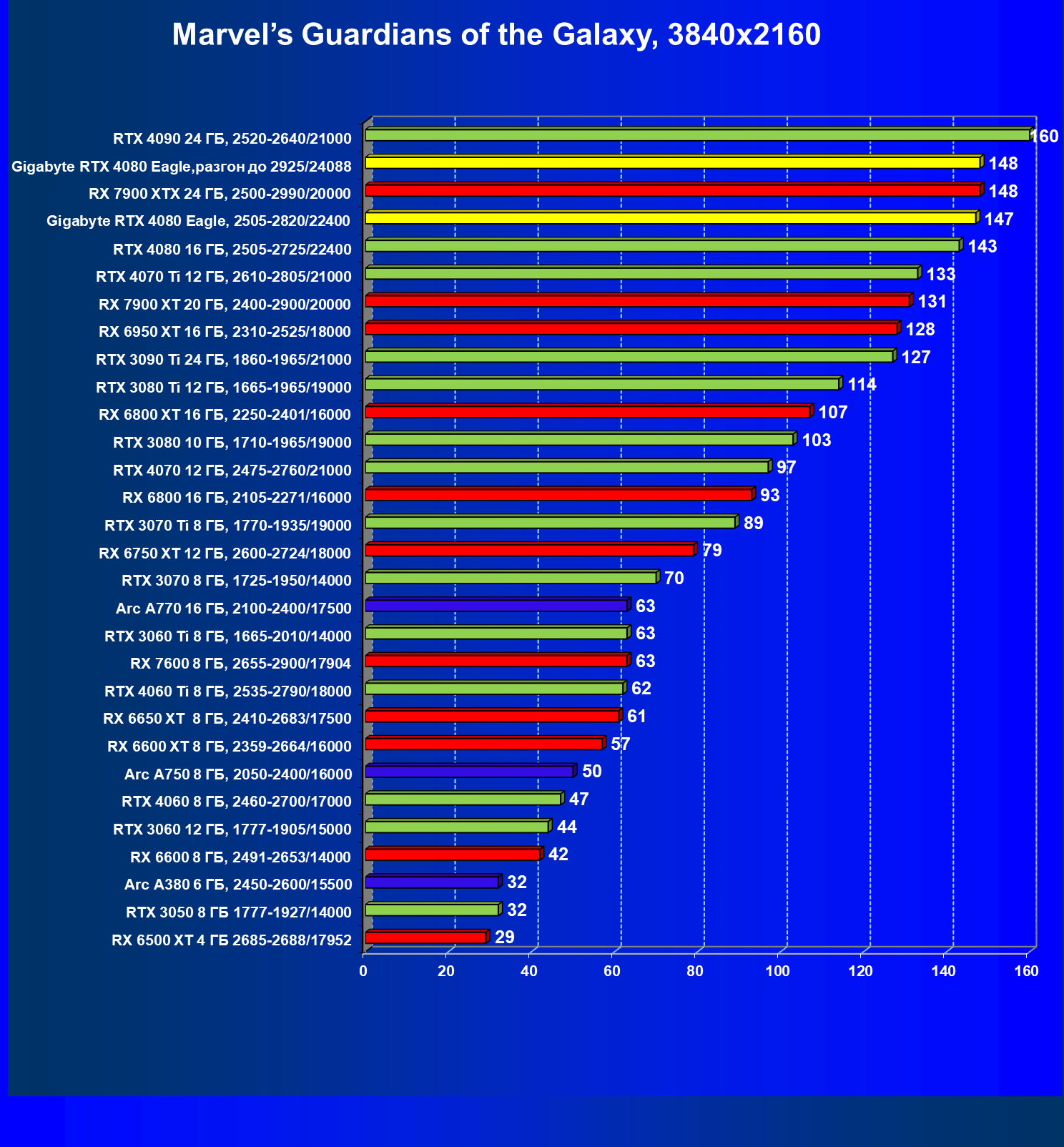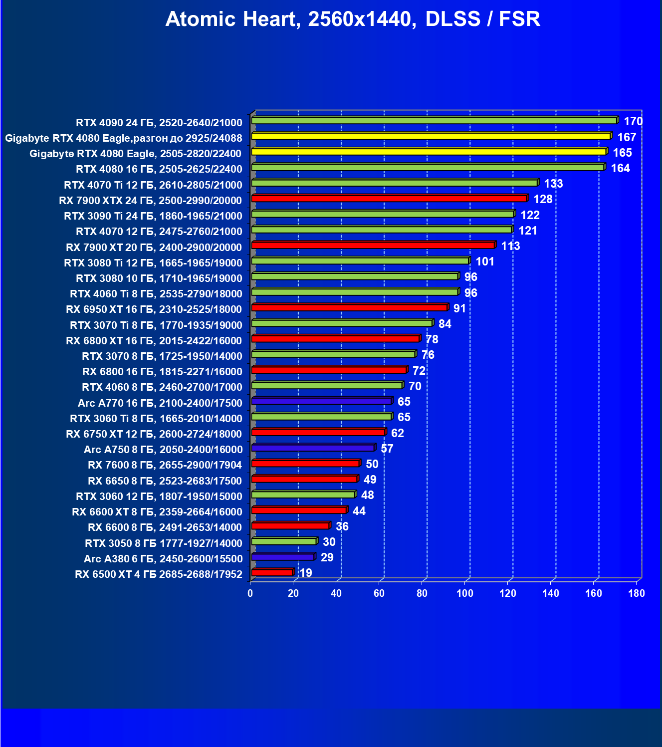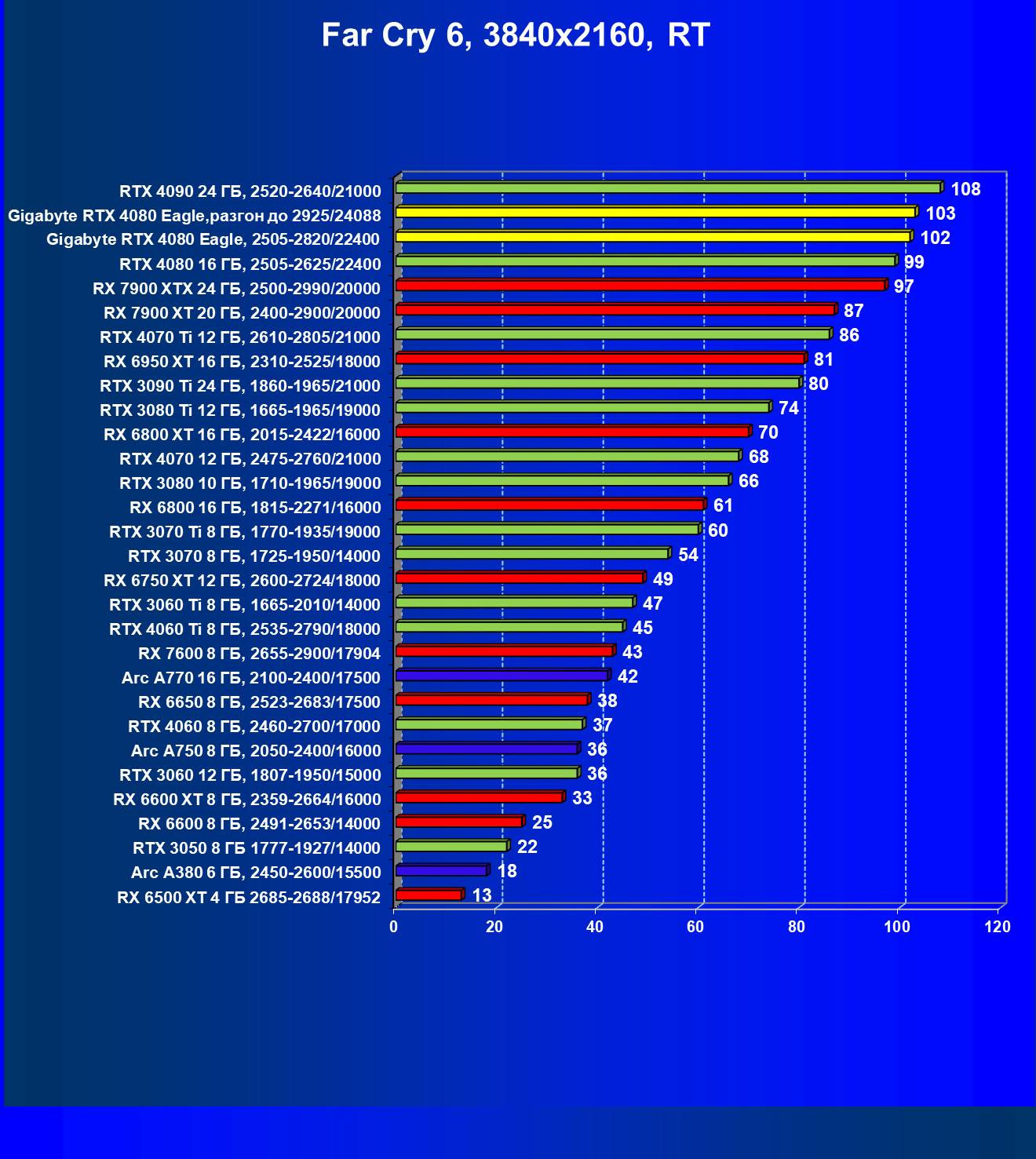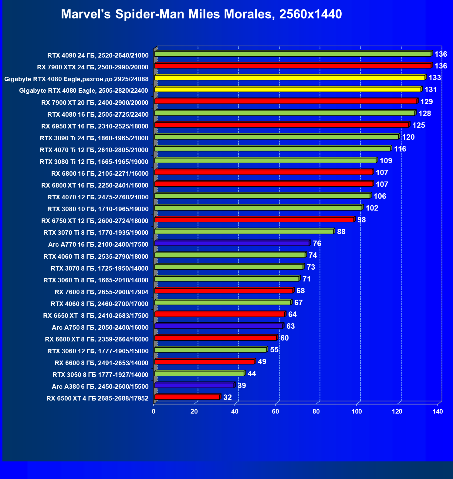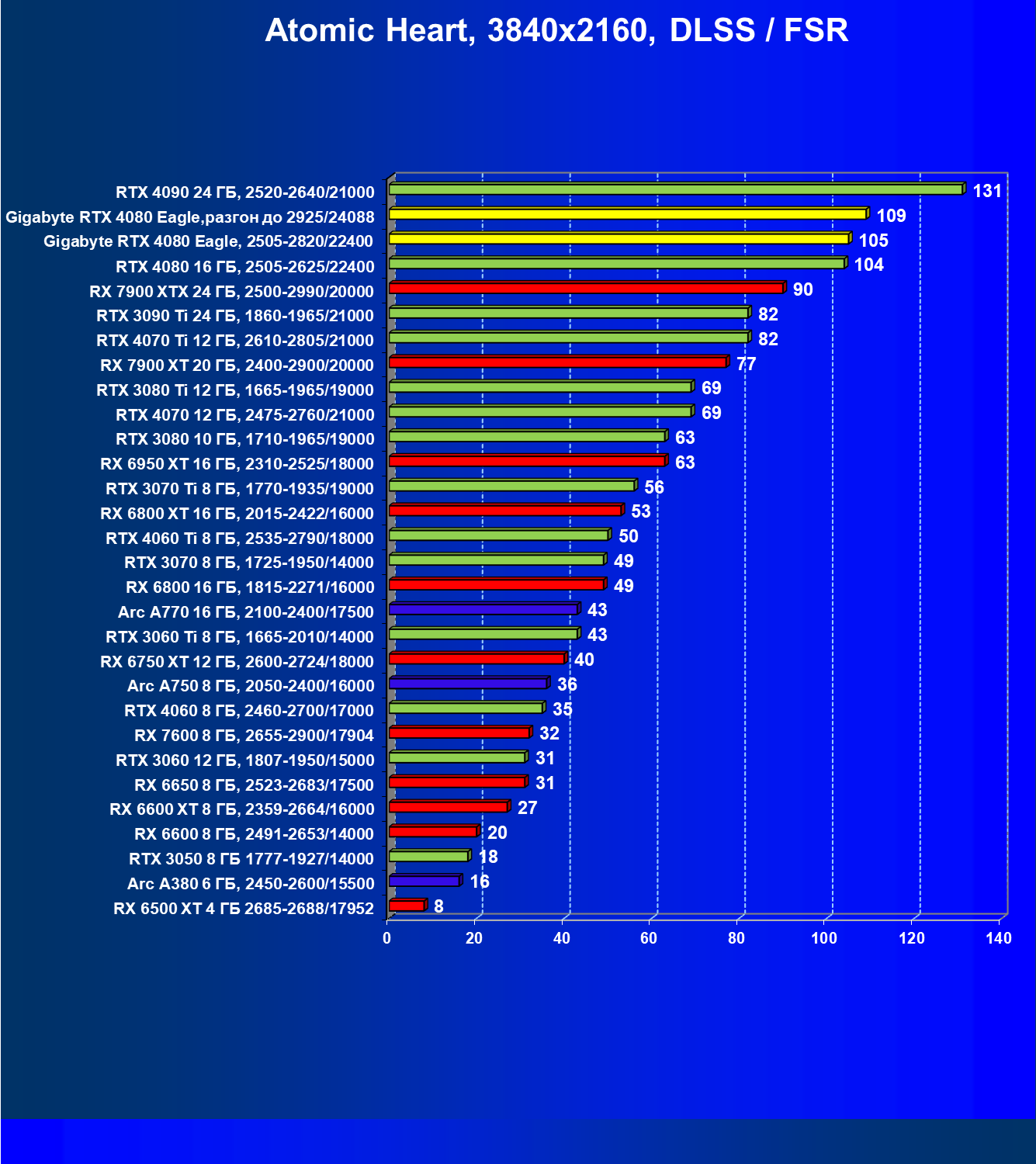 | 03 | Gigabyte RTX 4080 Eagle, 2505—2820/22400 | 1939 | 199 | 97 500 |