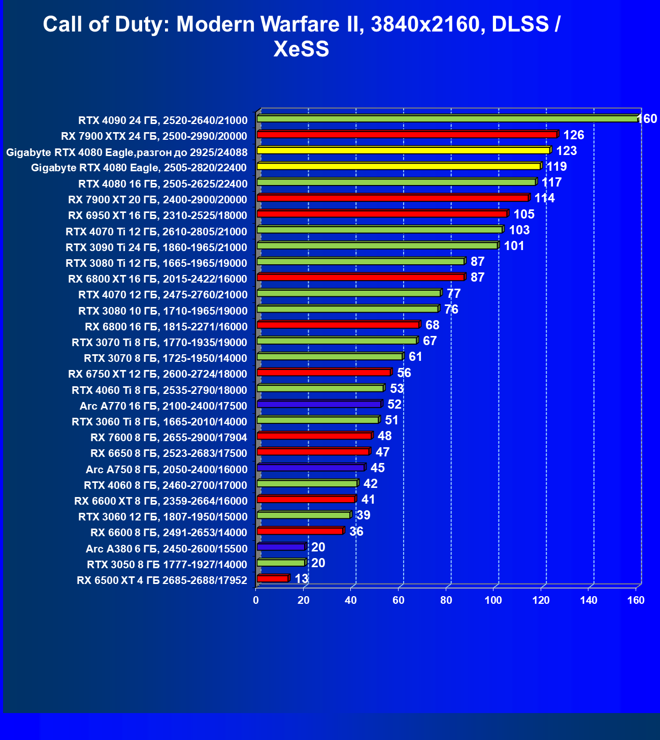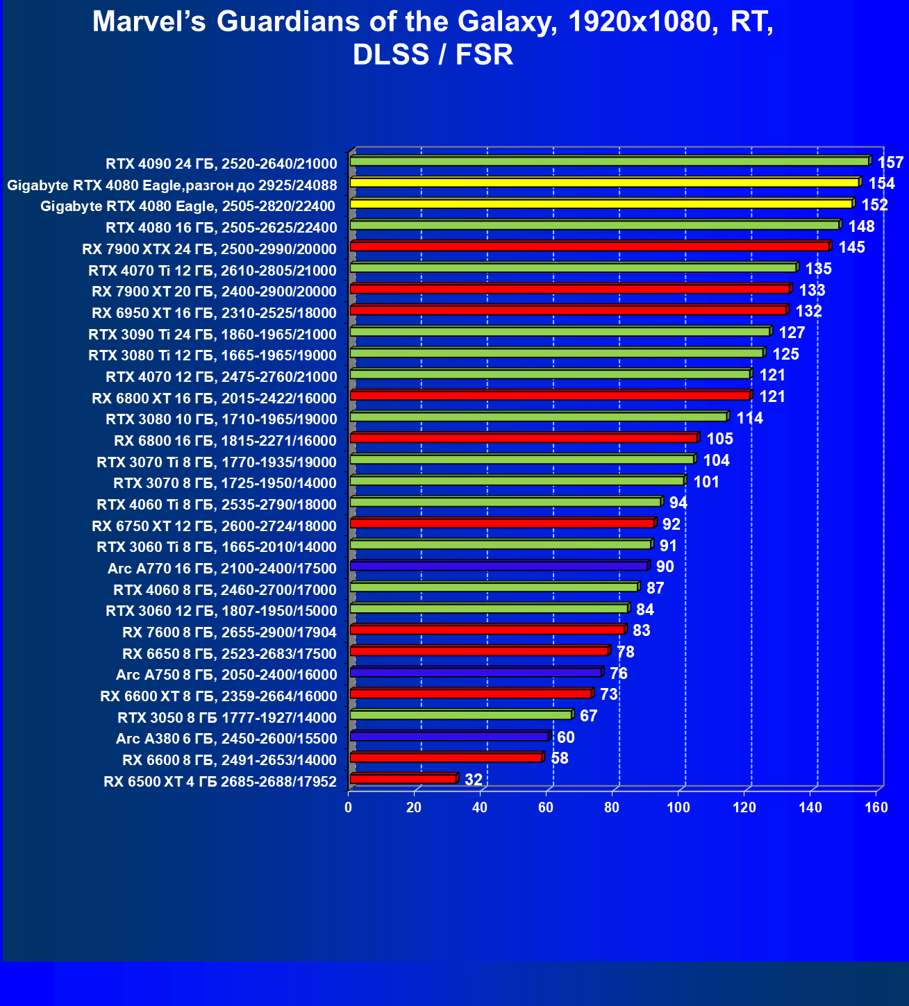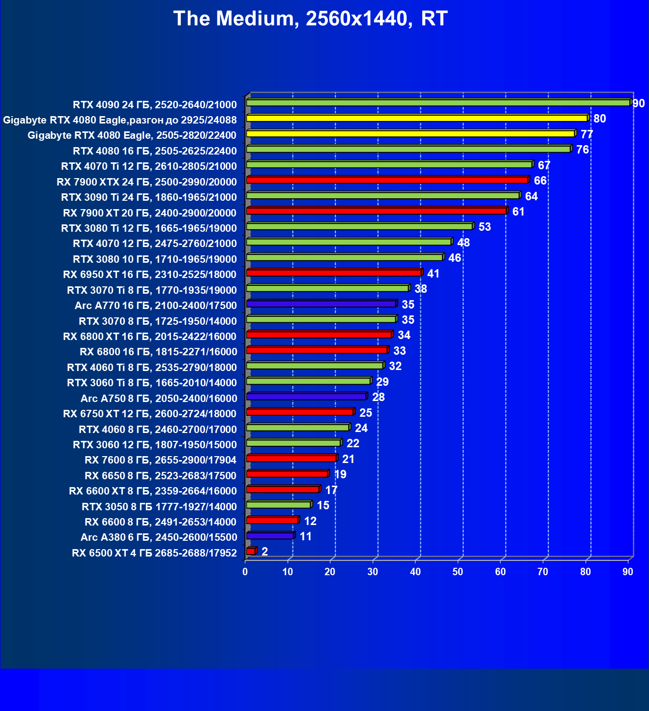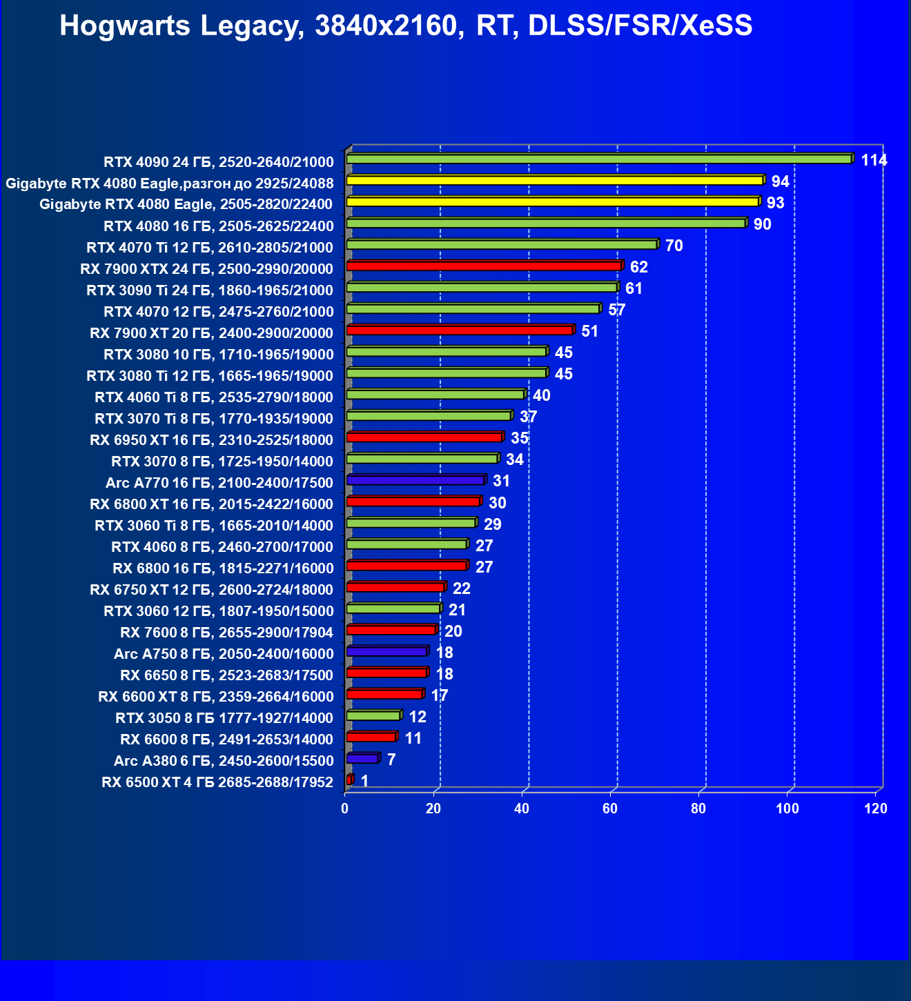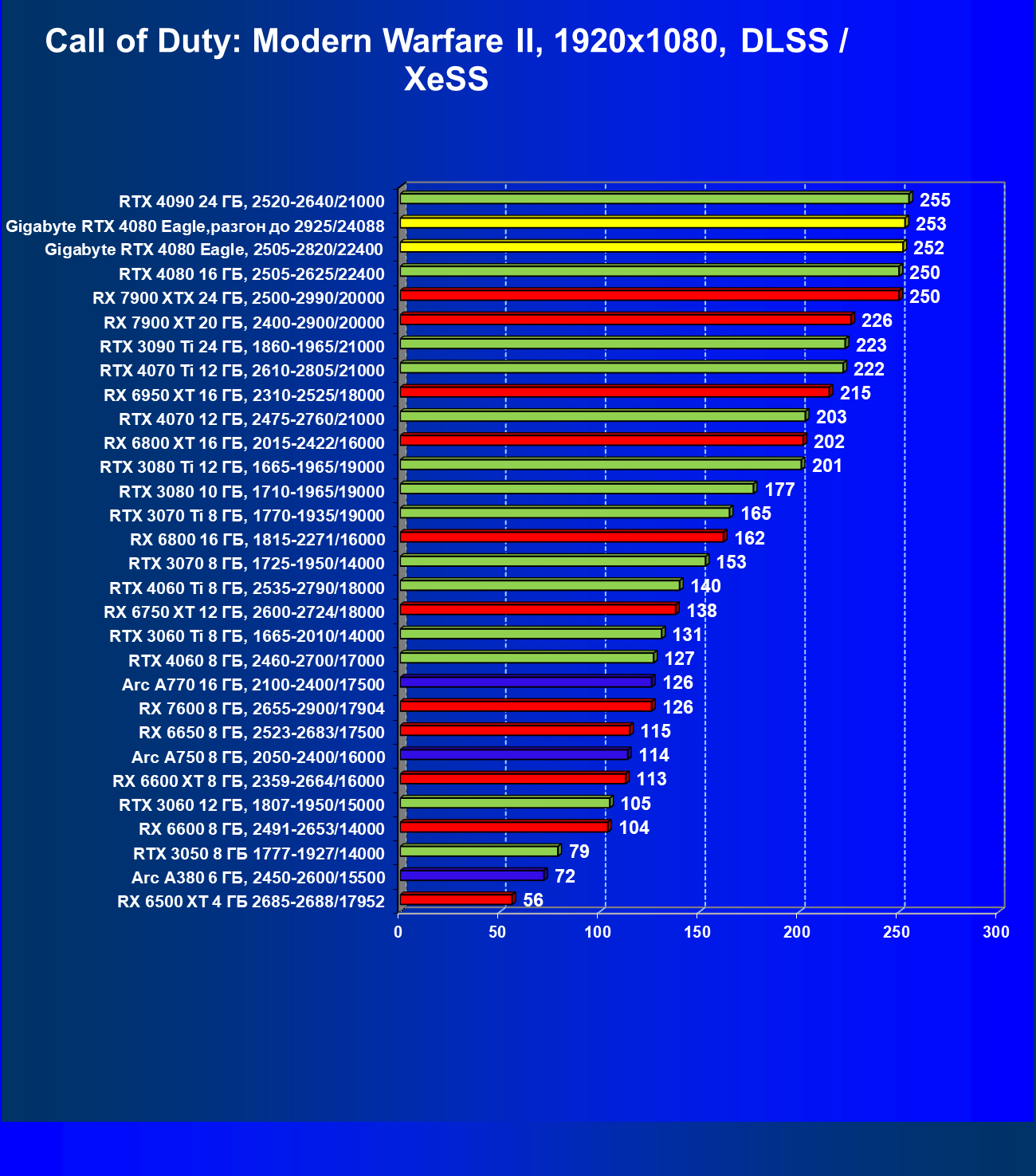 | 03 | Gigabyte RTX 4080 Eagle, 2505—2820/22400 | 1939 | 199 | 97 500 |