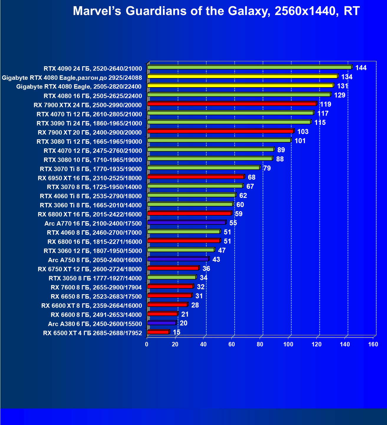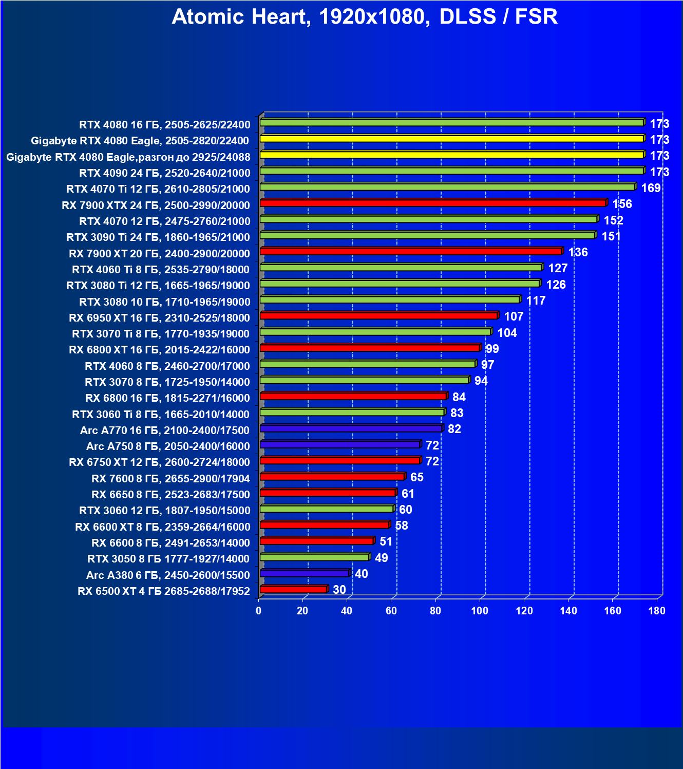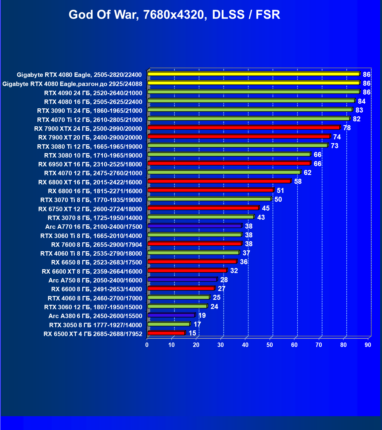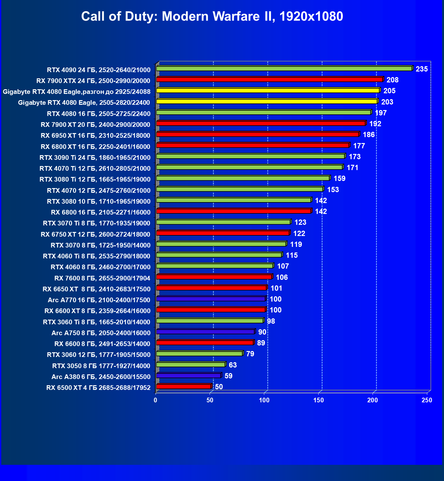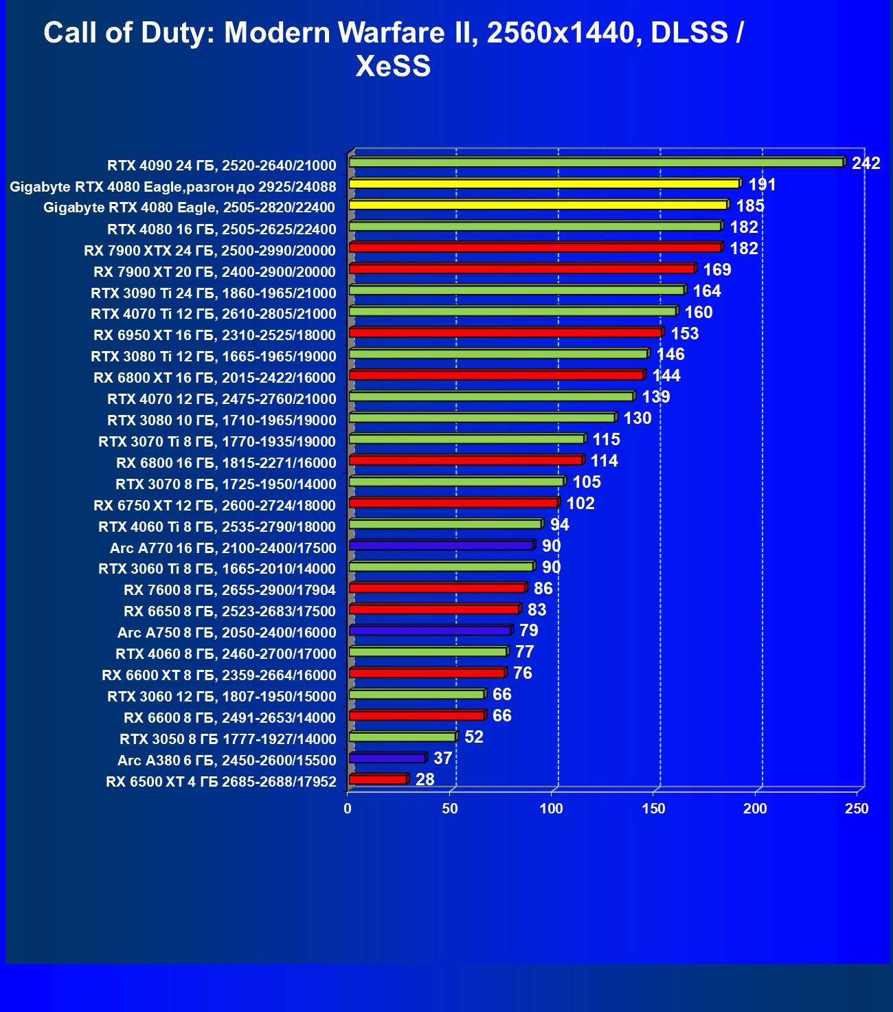 | 03 | Gigabyte RTX 4080 Eagle, 2505—2820/22400 | 1939 | 199 | 97 500 |