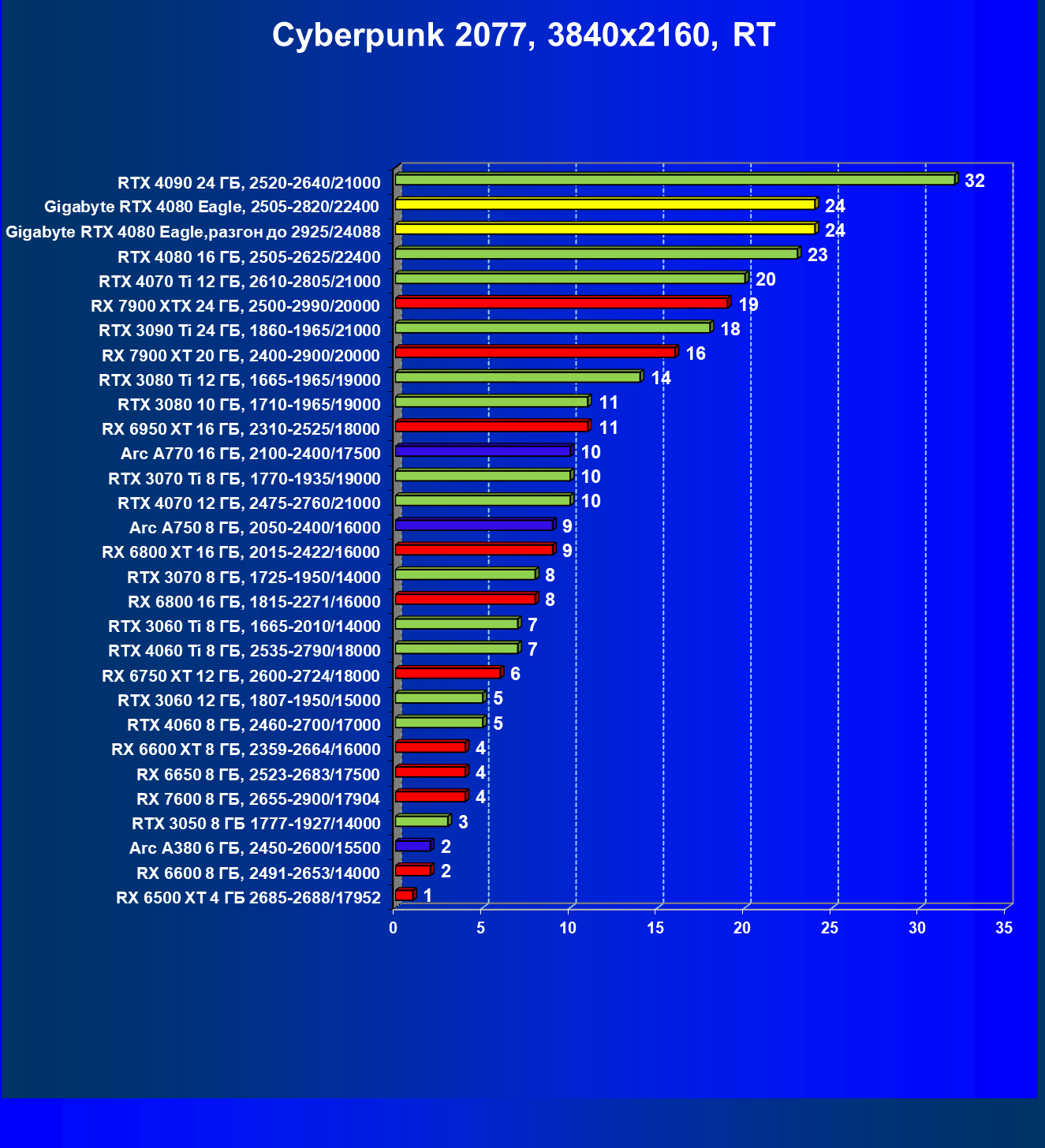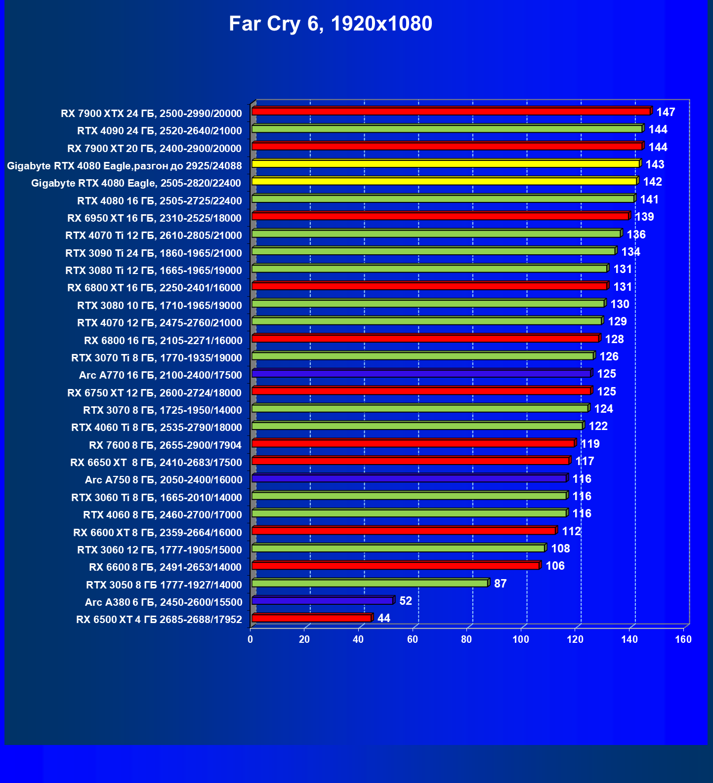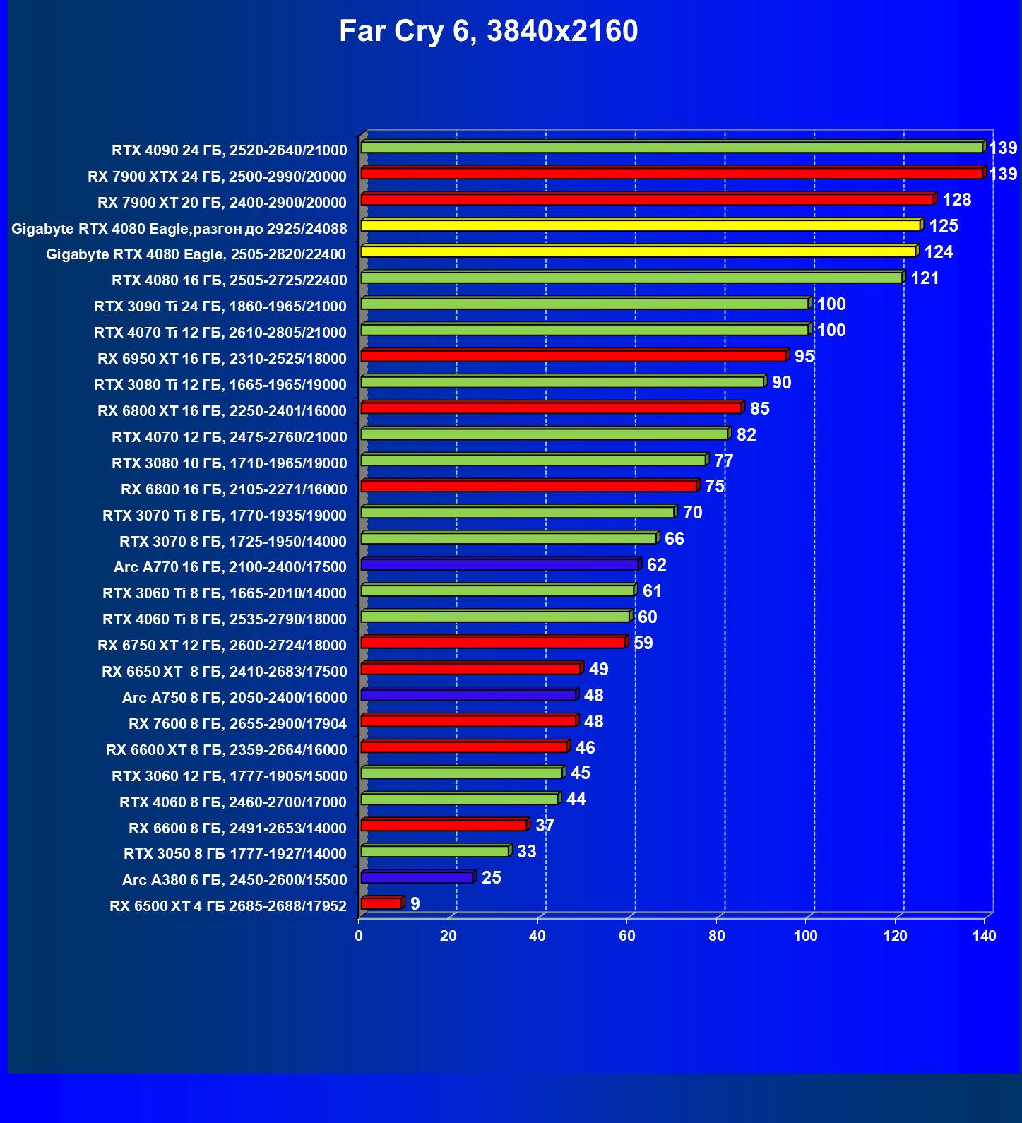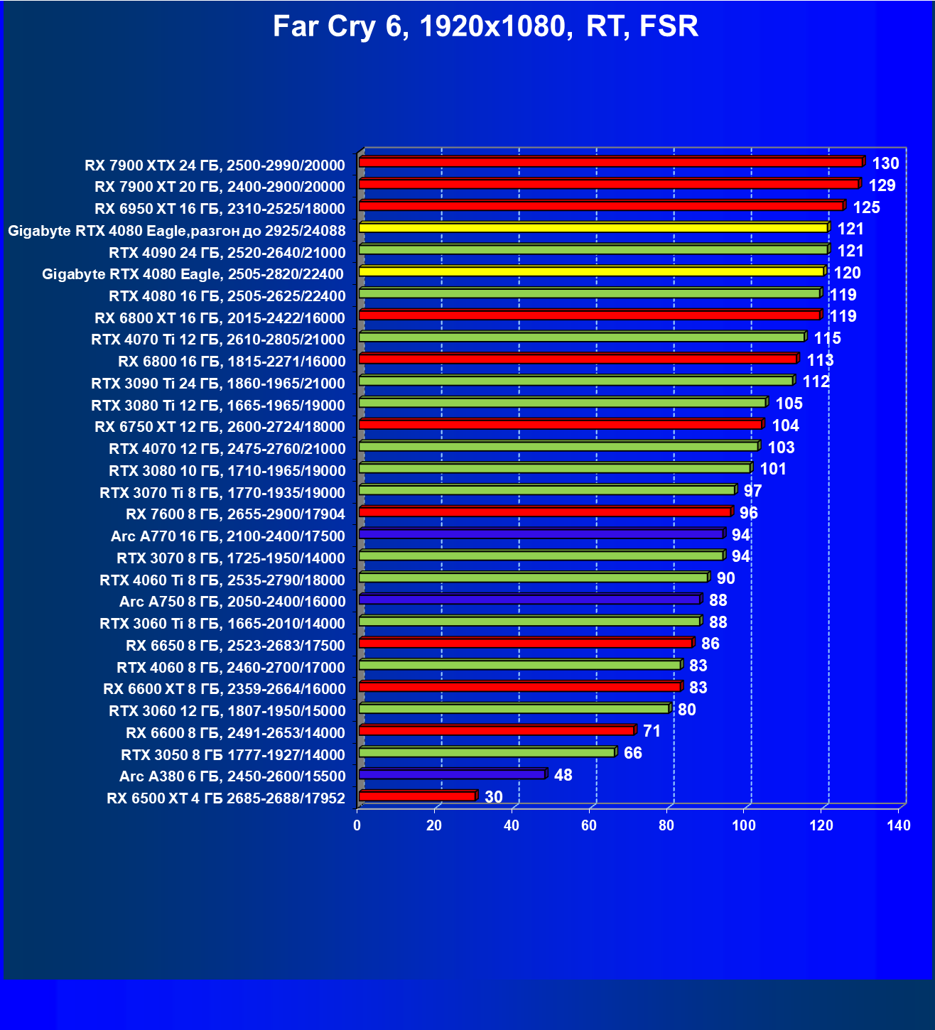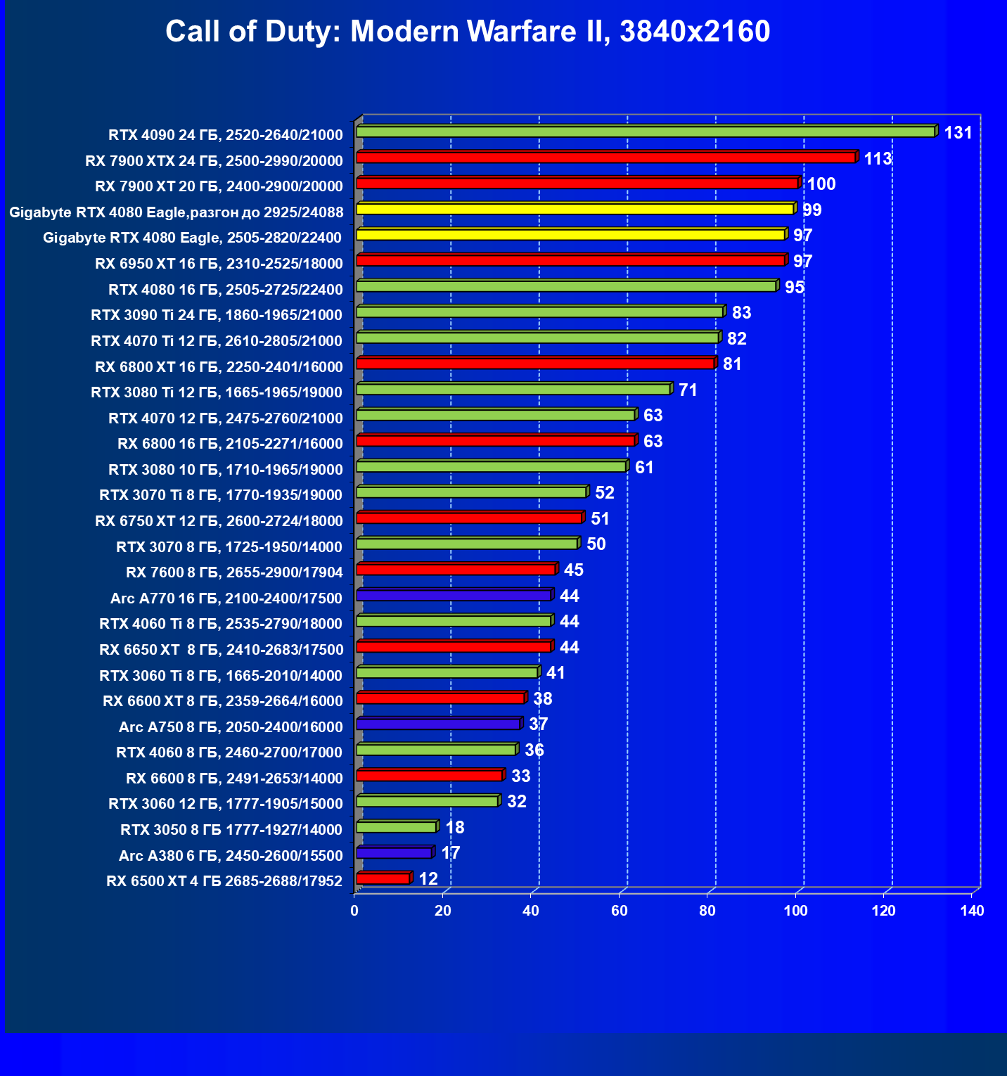| 08 | RX 7900 XTX 24 ГБ, 2500—2990/20000 | 129 | 1224 | 95 000 |