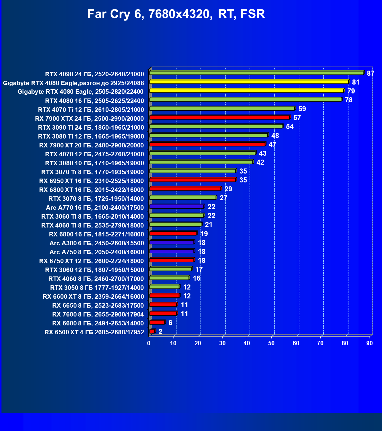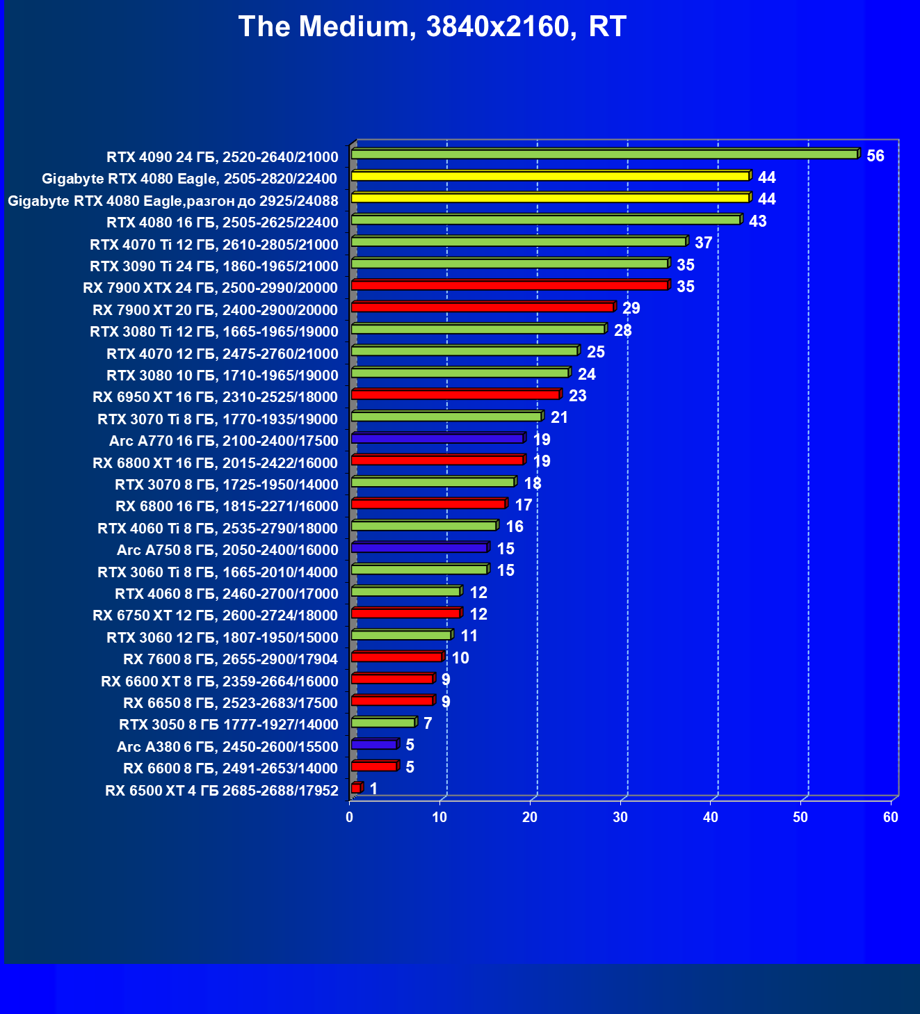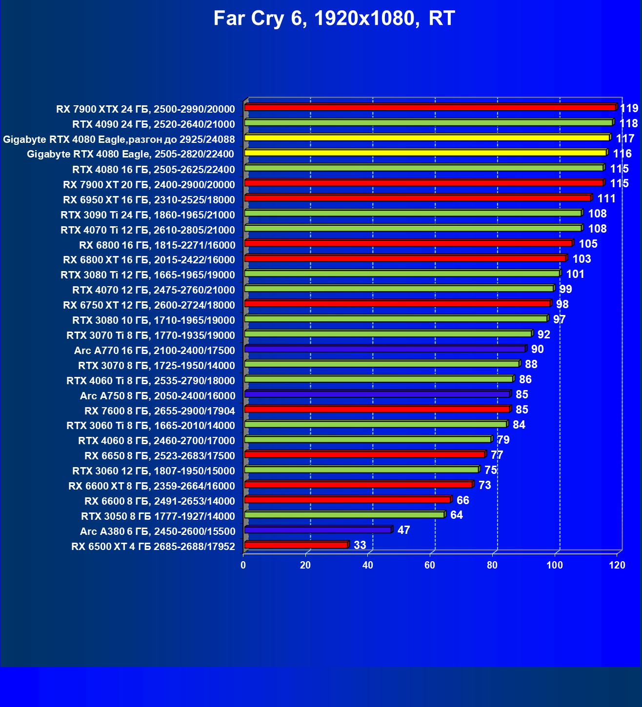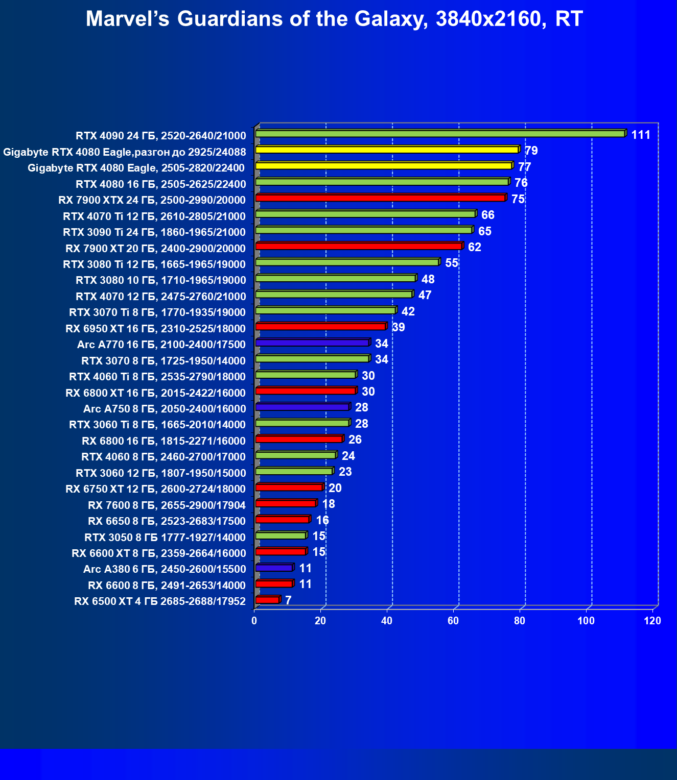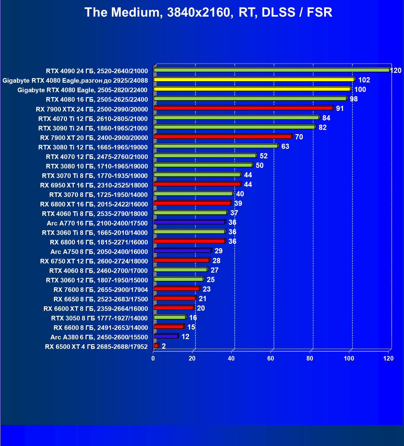 | 08 | RX 7900 XTX 24 ГБ, 2500—2990/20000 | 129 | 1224 | 95 000 |