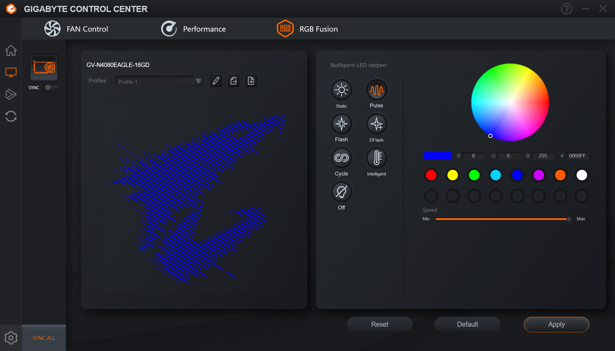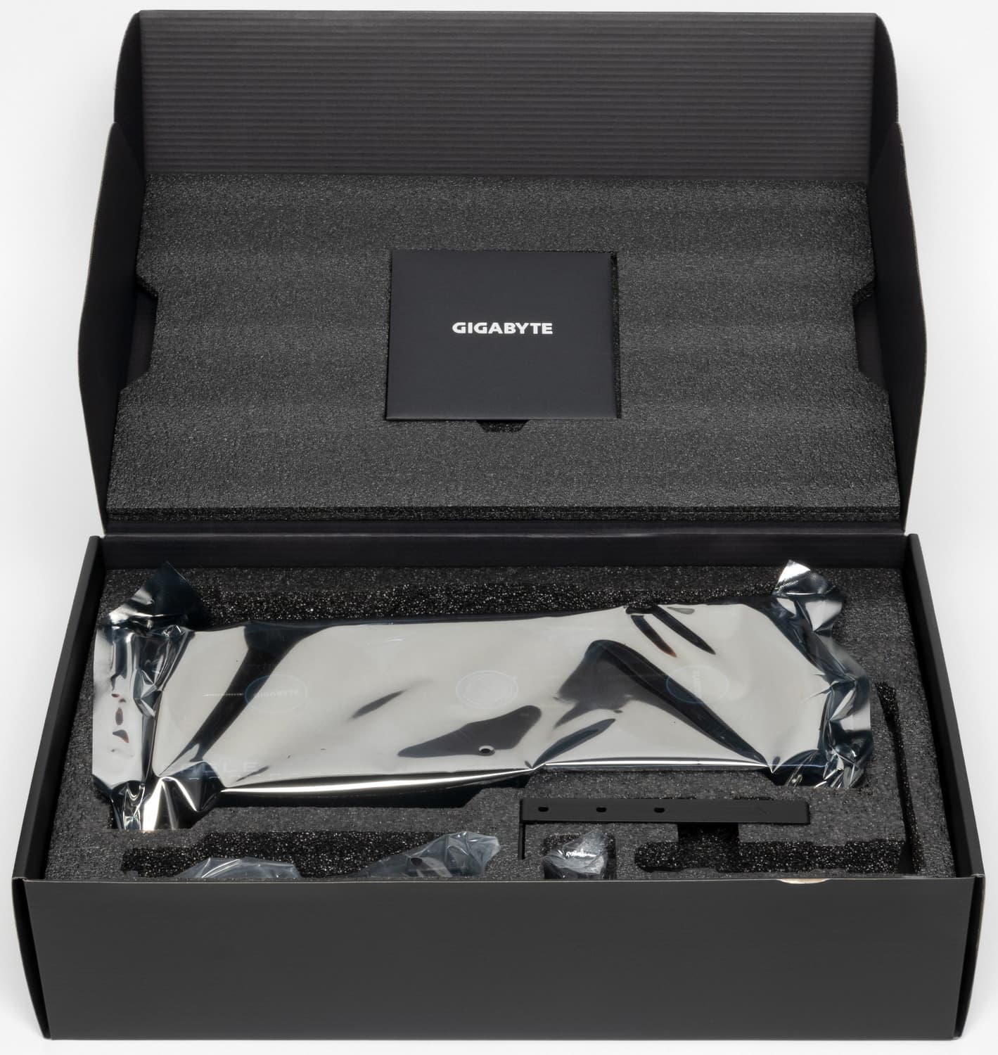 У карты лишь подсвечен логотип компании на верхнем торце. Управление традиционно осуществляется через утилиту Gigabyte Control Center.