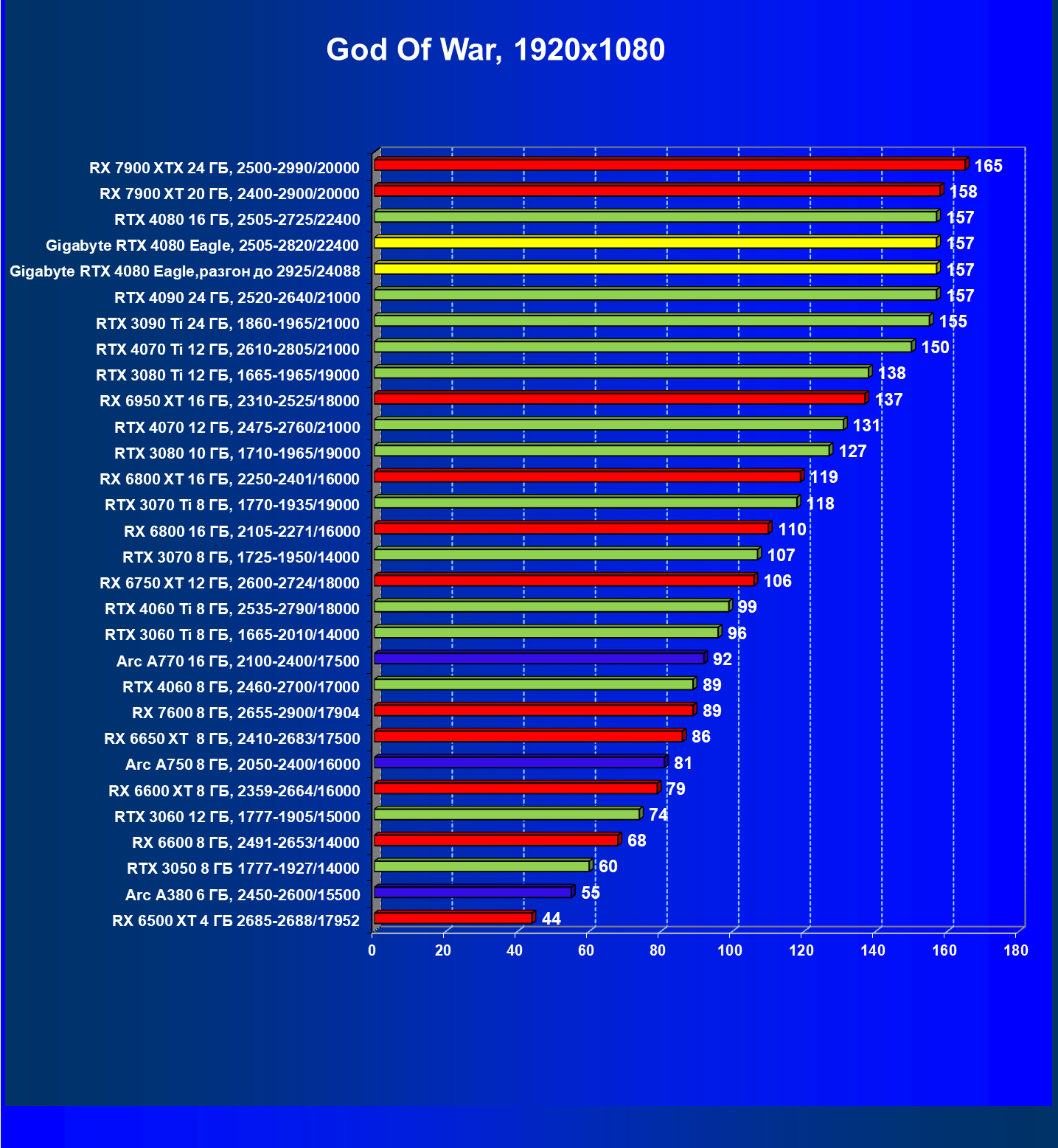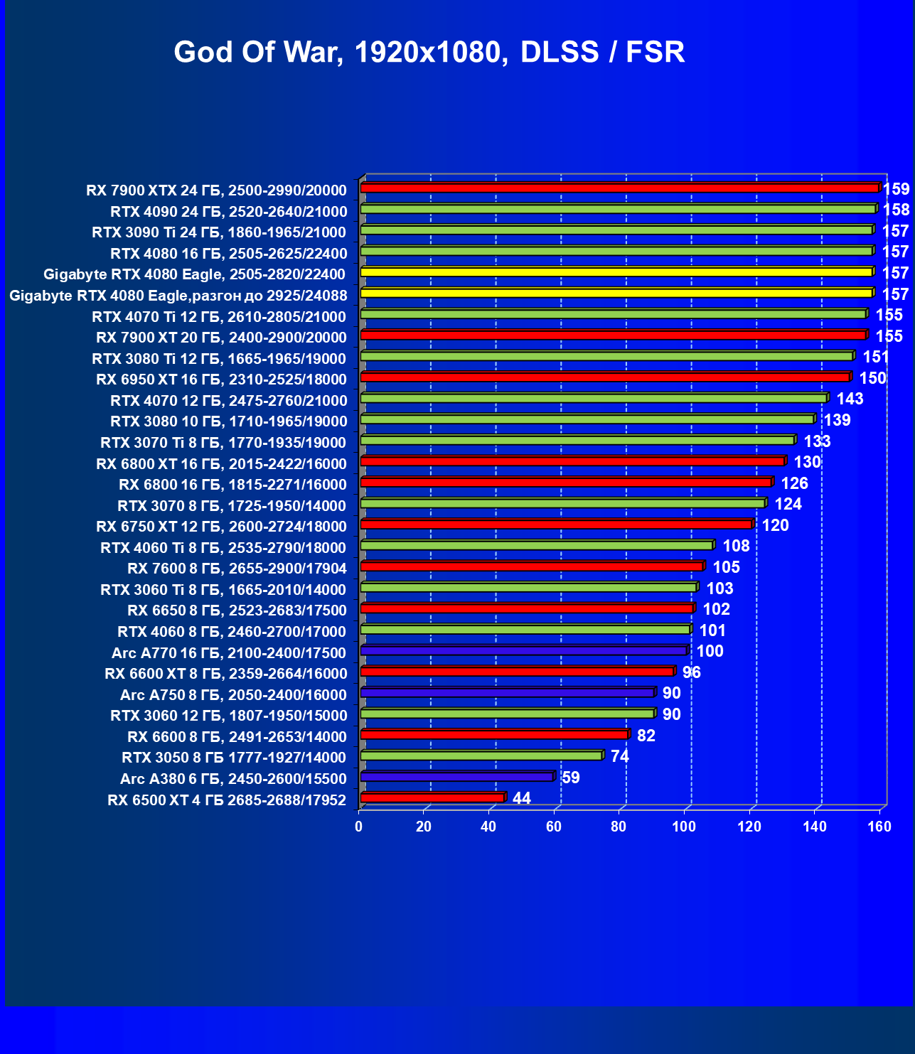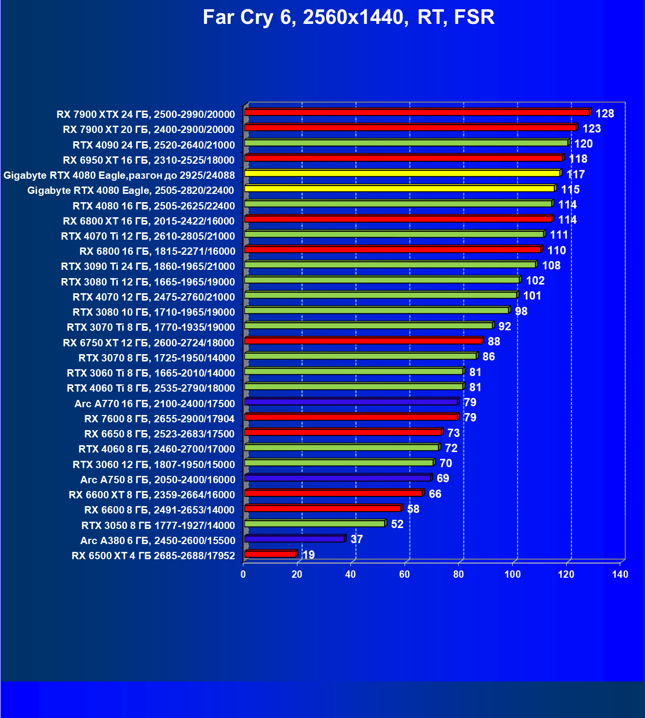В классических играх тишь да гладь: все логично согласно многочисленным тестам, проведенным не один раз: выигрывает Radeon RX 7900 XTX, который по цене почти равен RTX 4080 (чуть дешевле).