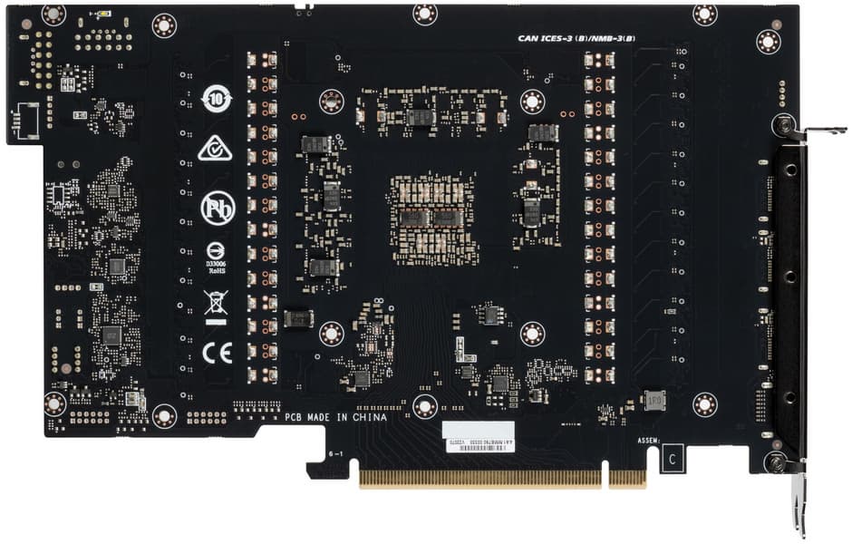 Карта имеет 16 ГБ памяти GDDR6X SDRAM, размещенной в 8 микросхемах по 16 Гбит на лицевой стороне PCB. Микросхемы памяти Micron (GDDR6X, MT61K512M32KPA-24 / D8BZF) рассчитаны на номинальную частоту работы в 3000 (24000) МГц.