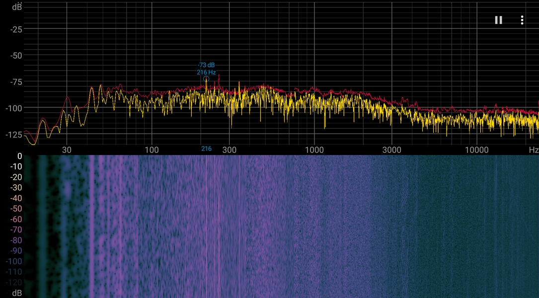 Спектрограмма шума показывает, что раздражающих пиков в процессе исследования не было.