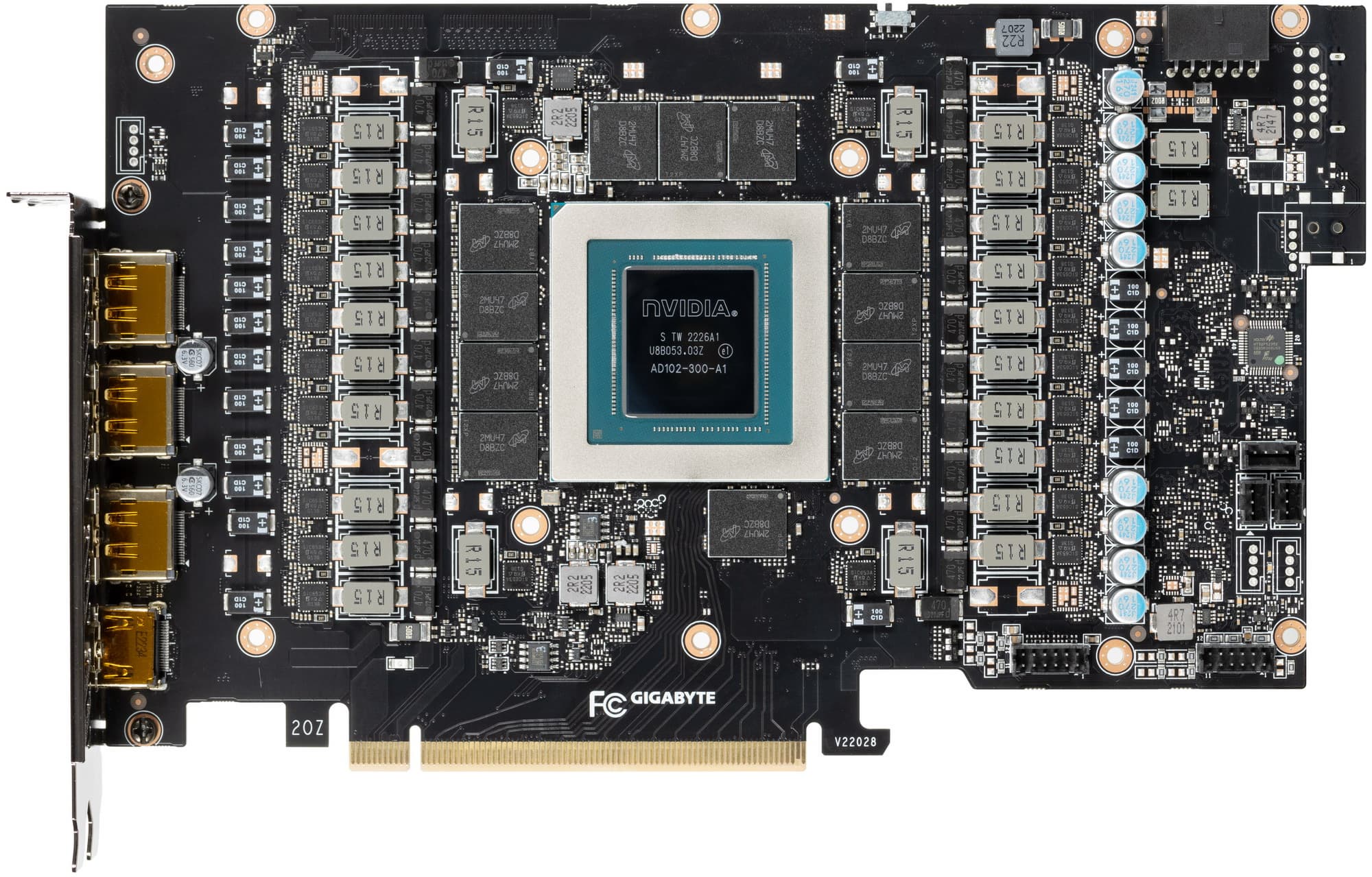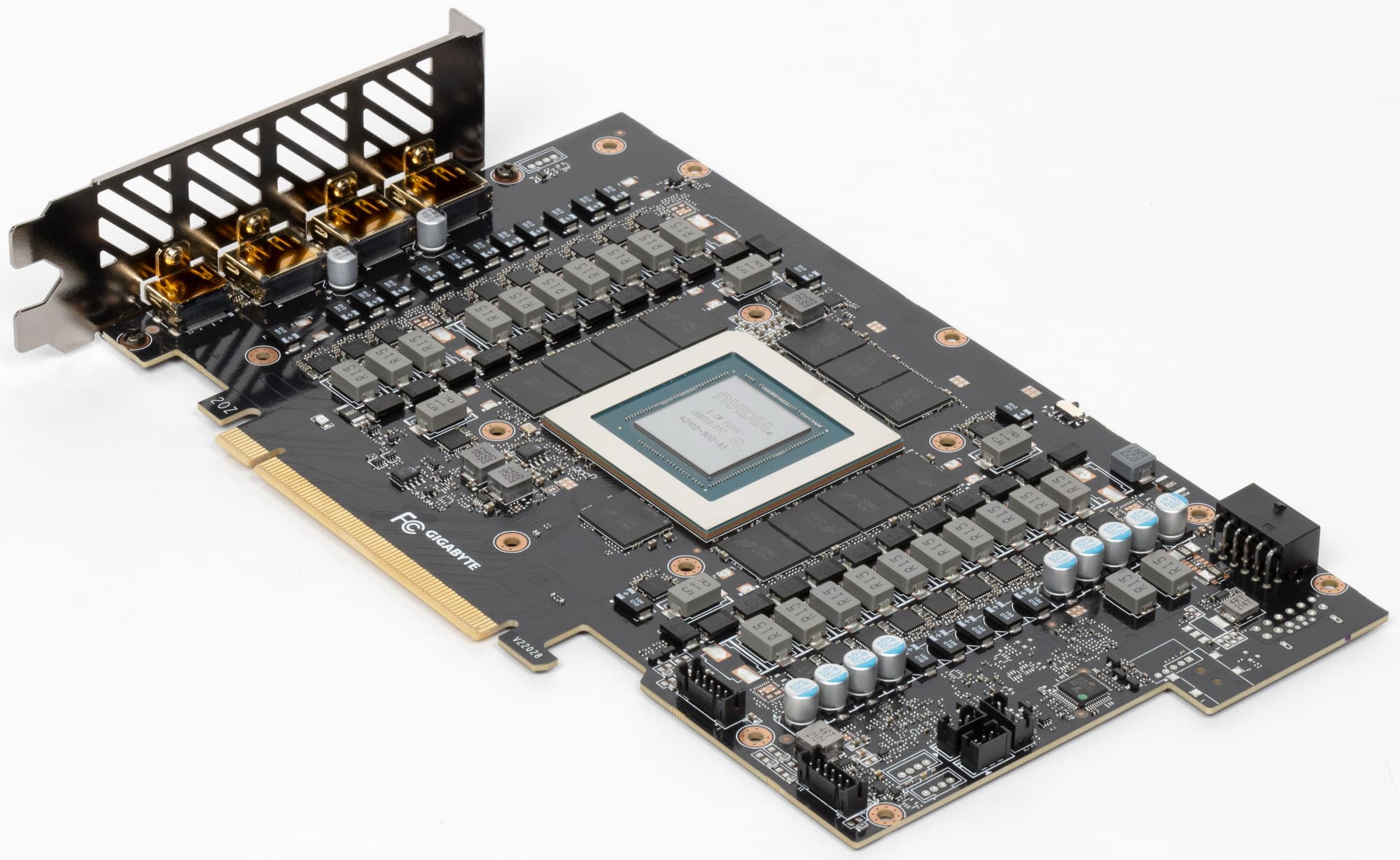 Карта имеет 16 ГБ памяти GDDR6X SDRAM, размещенной в 8 микросхемах по 16 Гбит на лицевой стороне PCB. Микросхемы памяти Micron (GDDR6X, MT61K512M32KPA-24 / D8BZF) рассчитаны на номинальную частоту работы в 3000 (24000) МГц.
