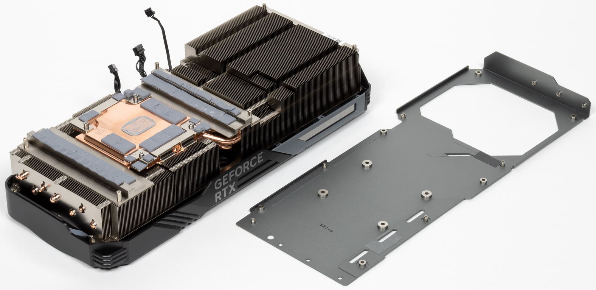 Микросхемы памяти охлаждаются с помощью этой же огромной медной подошвы (через термопрокладки). А для охлаждения преобразователей питания VRM имеются дополнительные подошвы на том же радиаторе.