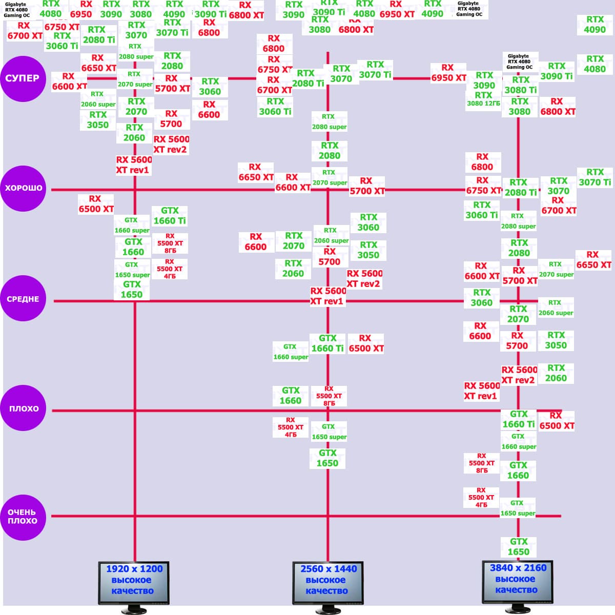 Рейтинг ускорителей iXBT.com демонстрирует нам функциональность видеокарт друг относительно друга и представлен в двух вариантах: