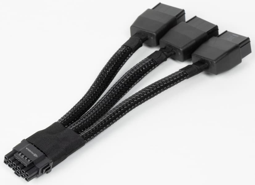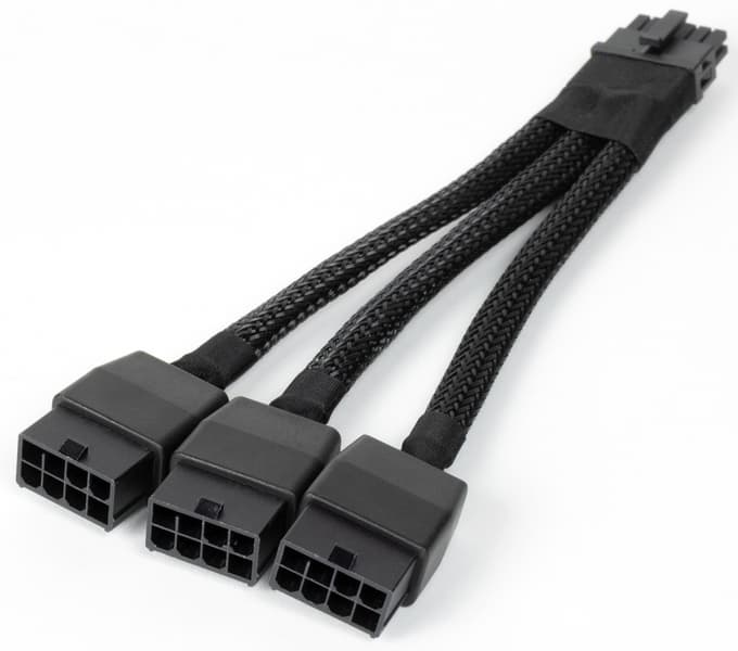 Данный адаптер крайне не рекомендуется сгибать в месте той самой оплетки. В целом мы еще раз рекомендуем приобретать полноценные БП ATX 3.0 с разъемом 12VHPWR и кабелем с 16 контактами для видеокарт новых поколений.