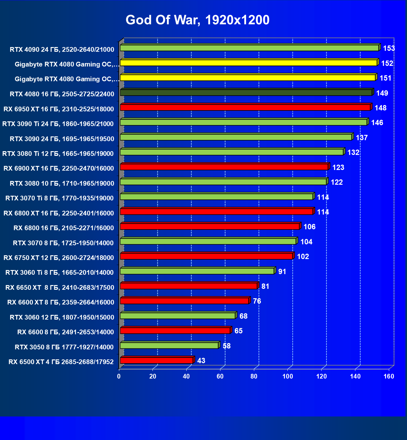 | 03 | Gigabyte RTX 4080 Gaming OC, 2535—2850/22400 | 507 | 43 | 118 000 |