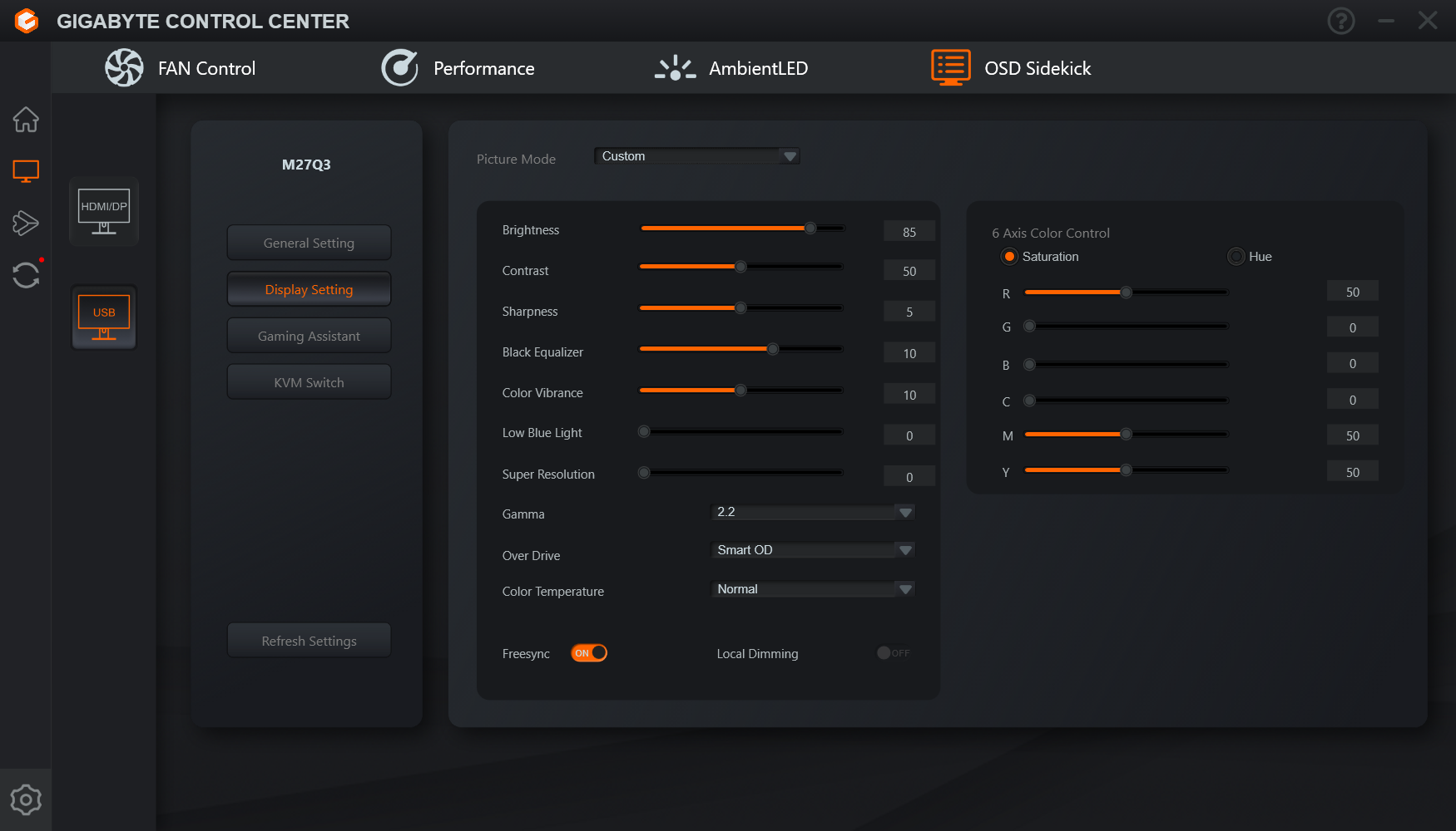 - ПО Gigabyte Control Center, расширяющее функциональность монитора