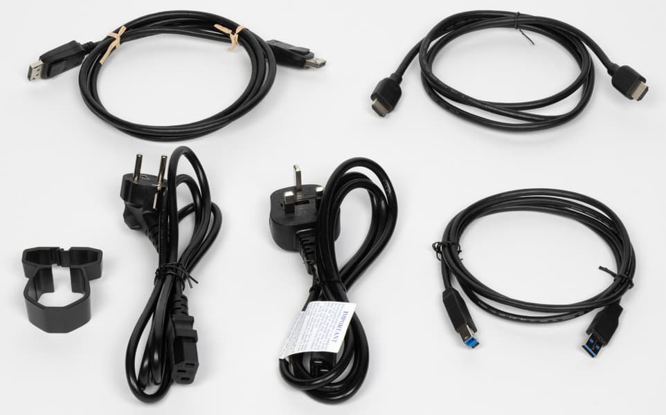 К монитору прилагается неплохой комплект кабелей черного цвета.
