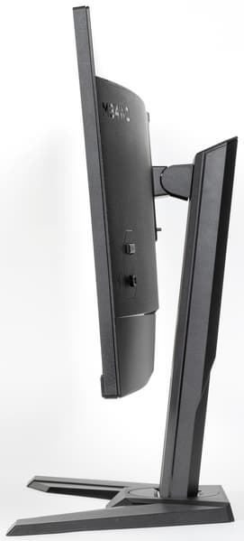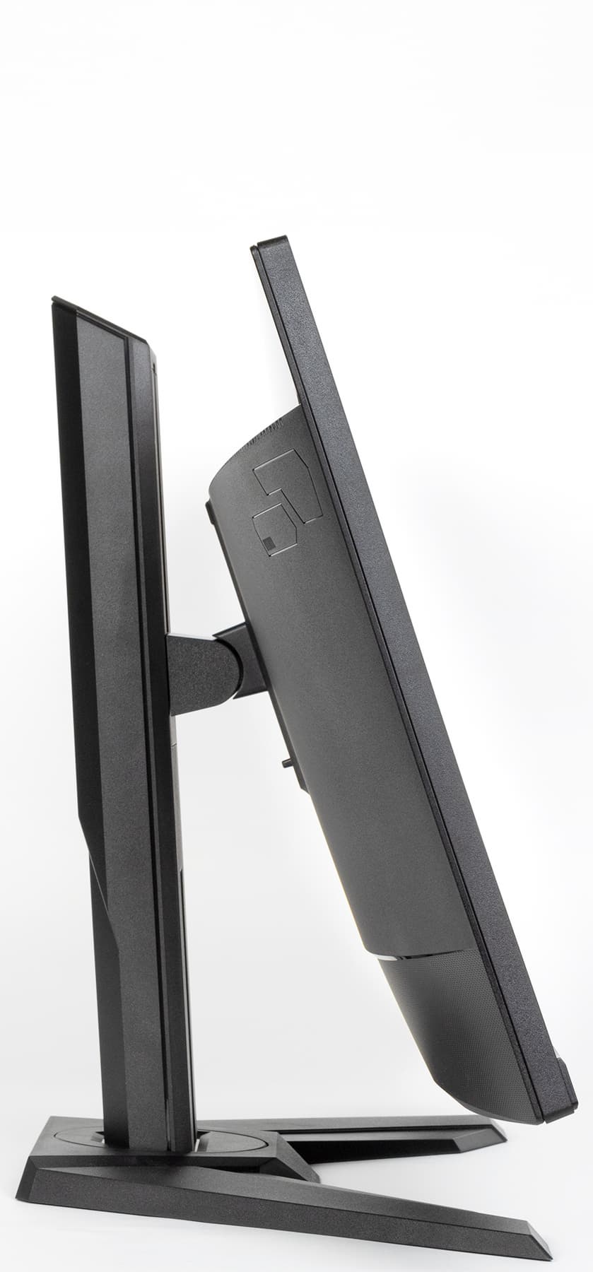 В целом дизайн умеренно игровой, поэтому с точки зрения внешнего вида монитор можно считать универсальным. Панели монитора и кожухи стойки подставки изготовлены из черного пластика в основном с просто матовой поверхностью, но местами есть мелкий рельефный узор и глянцевые участки.