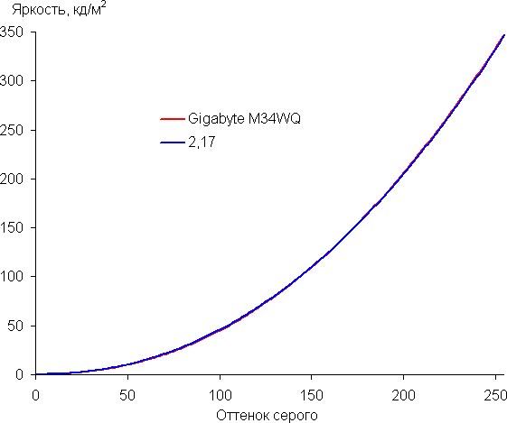 Аппроксимация полученной гамма-кривой дала показатель 2,17, что близко к стандартному значению 2,2, при этом реальная гамма-кривая мало отклоняется от аппроксимирующей степенной функции: