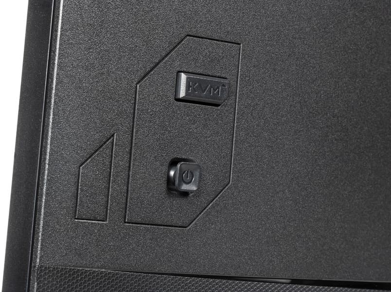 На задней панели близко к краю под правую руку находятся кнопка KVM и удобный 5-позиционный джойстик (отклонение по четырем направлениям и нажатие).