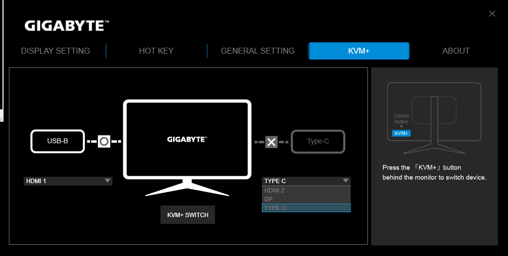 Есть встроенный концентратор USB (3.0) на два порта. Выходы USB поддерживают режим быстрой зарядки (BC 1.2). В наличие также не часто встречающаяся в мониторах функция KVM — к монитору по USB можно подключить клавиатуру и мышь (а можно и накопитель), чтобы затем их использовать с двумя источниками видеосигнала, например, с ПК и ноутбуком, или с ПК и планшетом. При этом один из источников должен быть подключен по USB-C (ввод видеосигнала по этому же интерфейсу, или по DisplayPort, или по HDMI), а второй — по USB через разъем USB-B (ввод видеосигнала или по DisplayPort, или по HDMI). На задней панели есть отдельная механическая кнопка для переключения между источниками, также ее могут заменить пункт в быстром меню монитора и кнопка в приложении OSD Sidekick. Еще как KVM-переключатель работает и просто выбор входа. Переключаются не только клавиатура и мышь, но и, например, флешка, подключенная к монитору через разъем USB-А.