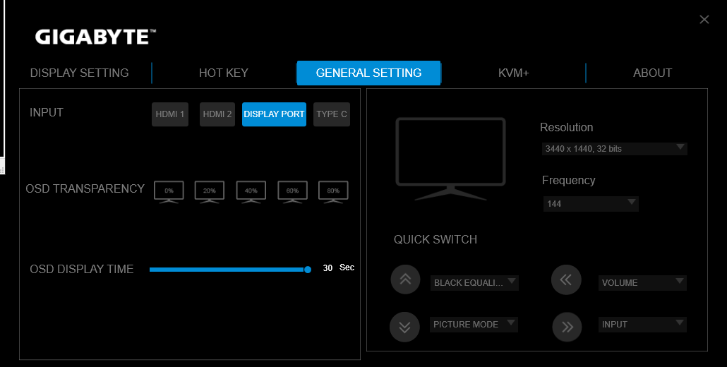 При подключении к компьютеру по DisplayPort поддерживалось разрешение до 3440×1440 при 144 Гц кадровой частоты на вход, и вывод изображения на экран также осуществлялся с этой частотой, в случае HDMI — только до 3440×1440 при 100 Гц. При таких сочетаниях разрешения и частот обновления поддерживается HDR. По DisplayPort при 144 Гц — 10 бит на цвет, по HDMI при 100 Гц — 8 бит на цвет.