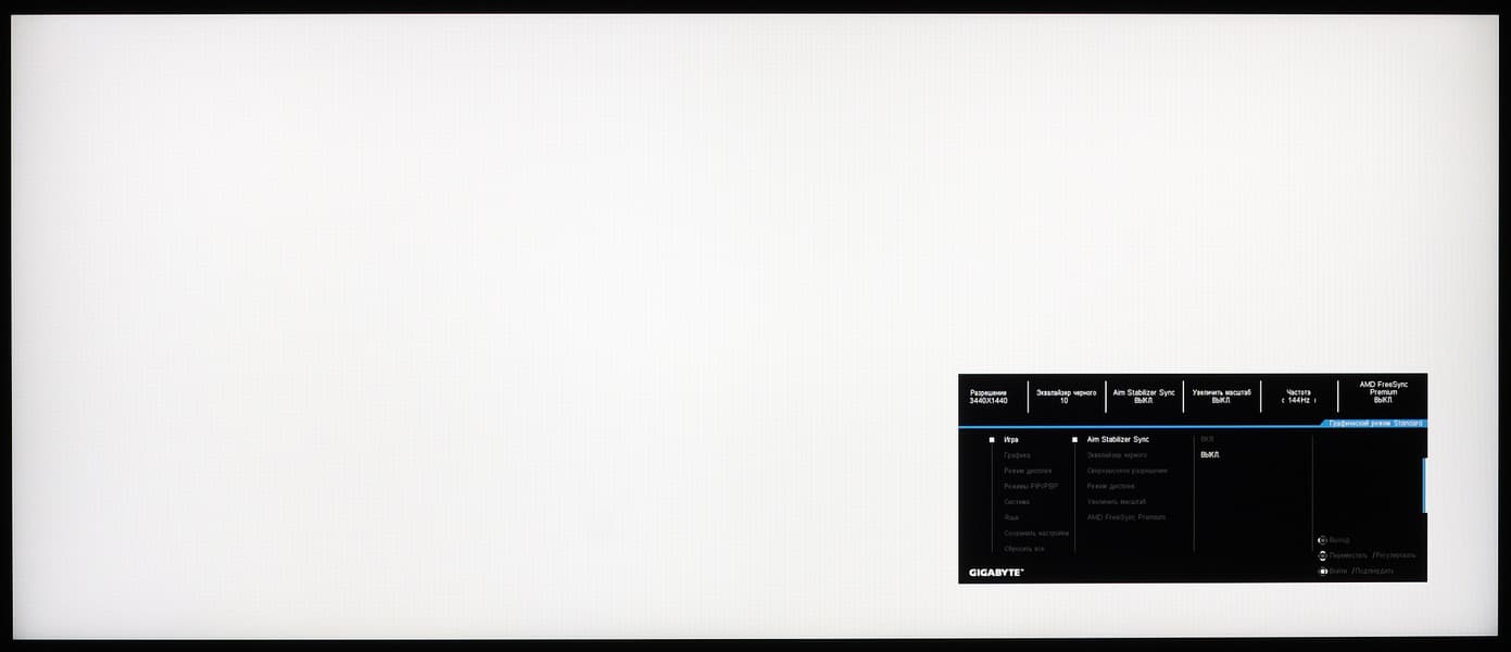 Если отступить от краев, то равномерность всех трех параметров хорошая. Контрастность для данного типа матриц по современным меркам типичная. Визуально видно, что черное поле все же местами ближе к краям слегка засвечено. Фотография ниже это демонстрирует: