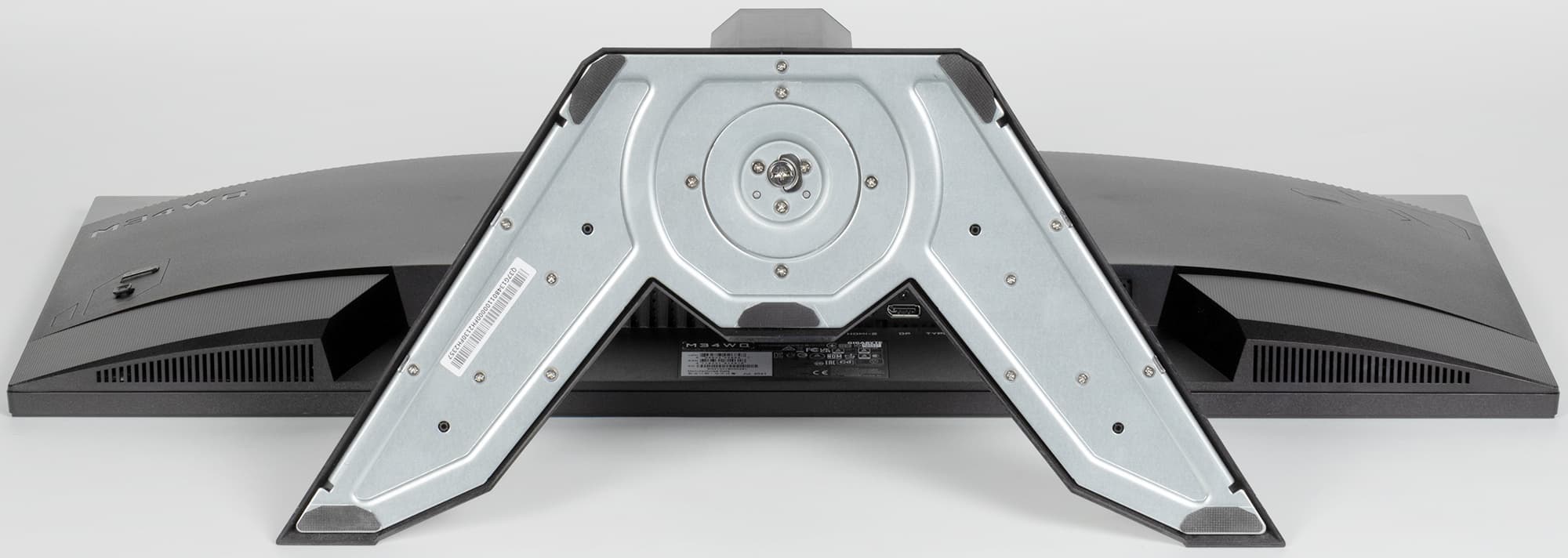 Несущие элементы подставки изготовлены из толстой штампованной стали и алюминиевого сплава. Лапы основания подставки расходятся широко в стороны, что обеспечивает монитору хорошую устойчивость, при этом сверху на горизонтальную поверхность основания можно положить край клавиатуры. Резиновые накладки снизу на опорных плоскостях основания подставки защищают поверхность стола от царапин и предотвращают скольжение монитора на гладких поверхностях.