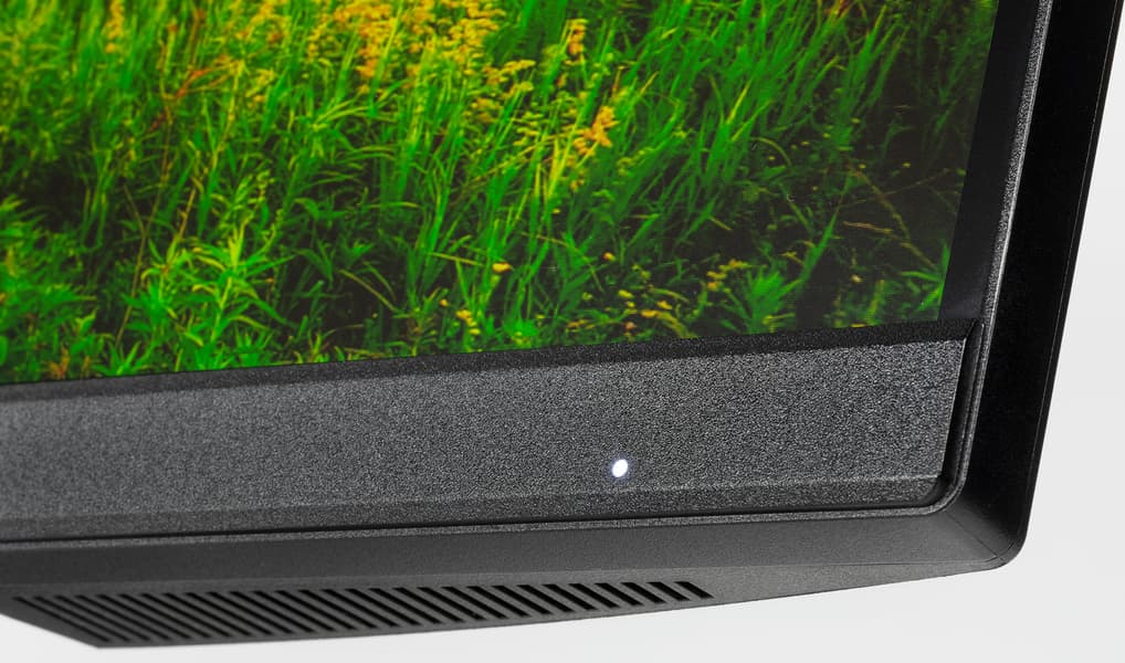 Внешняя поверхность матрицы черная, полуматовая, жесткая. Экран выглядит как монолитная поверхность, ограниченная снизу относительно узкой планкой, а сверху и по бокам — узкой окантовкой. Выведя изображение на экран, можно увидеть, что на самом деле между внешними границами экрана и собственно областью отображения есть неширокие поля — по 8 мм до внешних краев сверху и по бокам и 1,5 мм до планки снизу.