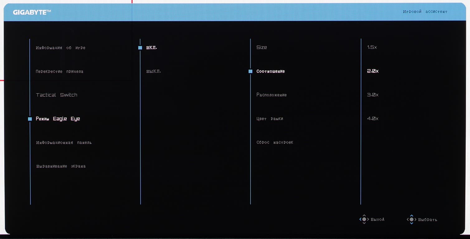 Также можно выбрать функцию, назначенную на нажатие тактической кнопки, и включить функцию увеличения центральной области экрана (Eagle Eye — орлиного глаза) — вывод прямоугольной области с увеличением для лучшего прицеливания.