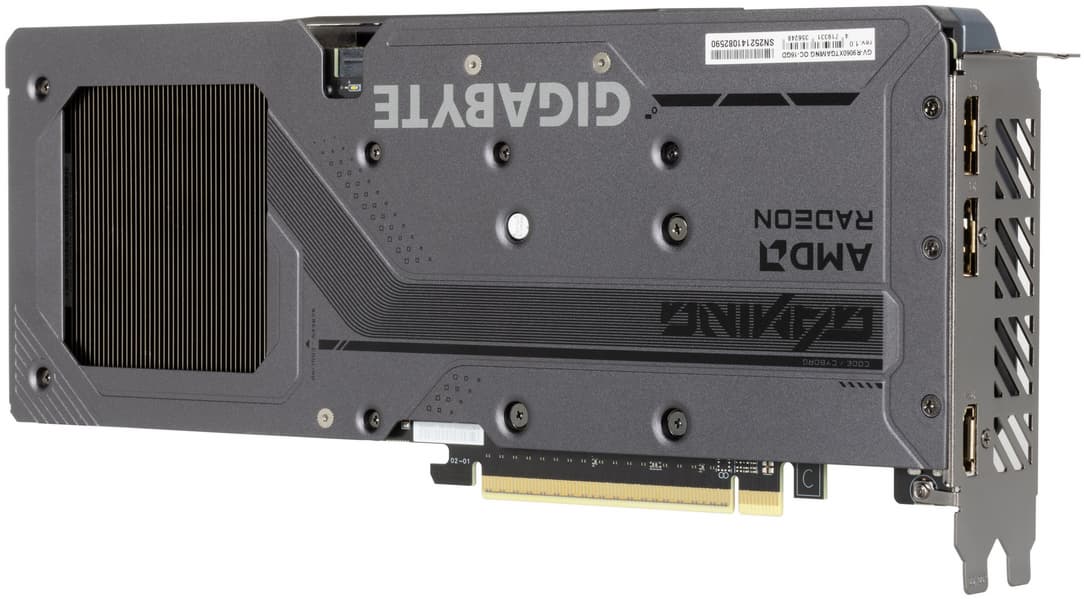 Gigabyte Radeon RX 9060 XT OC (16 ГБ) относится скорее к бюджетному уровню (как он понимается для современных видеокарт), она может потреблять до 182 Вт (официальный лимит AMD — 175 Вт) и имеет один 8-контактный разъем питания. Однако производитель предпочел установить довольно мощную систему охлаждения, что сохранило адекватные размеры карты (28×12 см, толщина 2 слота) и обеспечило низкий уровень шума при отличном температурном режиме. У этой видеокарты 3 видеовыхода: 1 HDMI 2.1b и 2 DisplayPort 2.1b — последний обеспечивает пропускную способность до 80 Гбит/с в режиме передачи UHBR 20 и позволяет подключить 8K-дисплей с частотой обновления 60 Гц по одному кабелю.