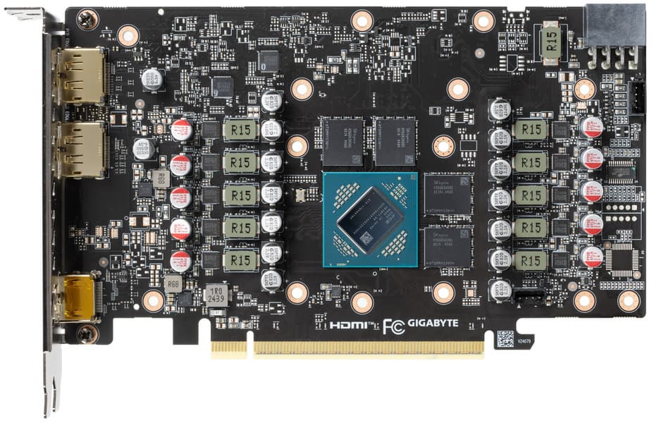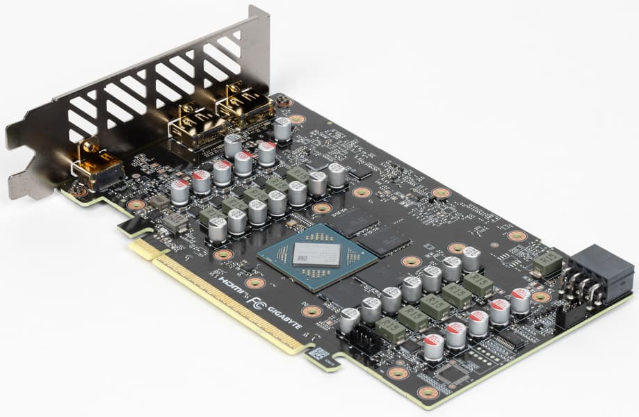 Питание на карту Gigabyte подается через один обычный 8-контактный разъем стандарта PCIe 2.0.