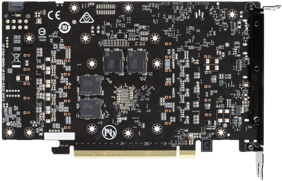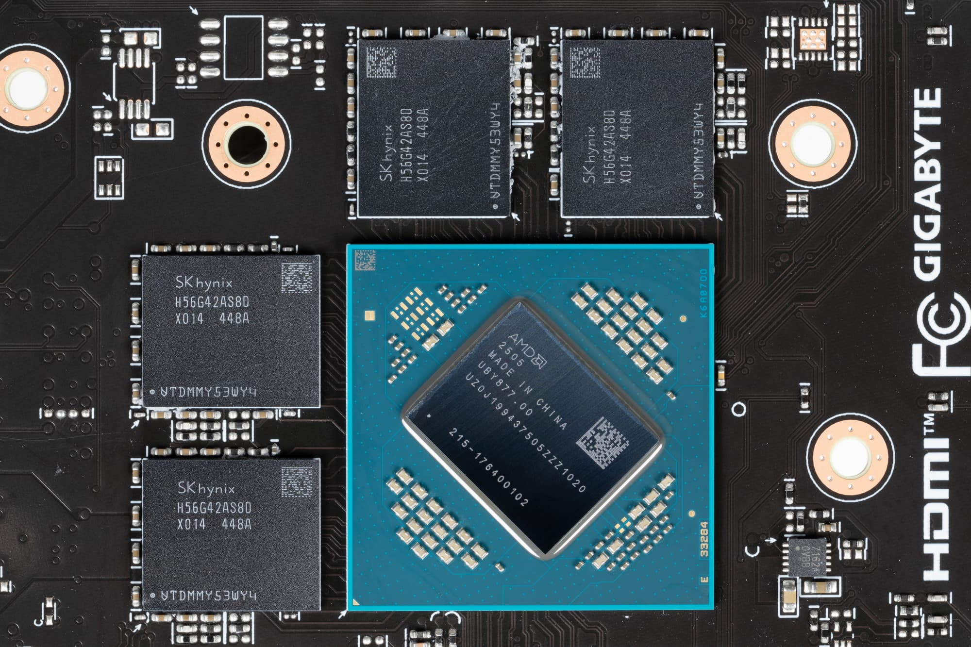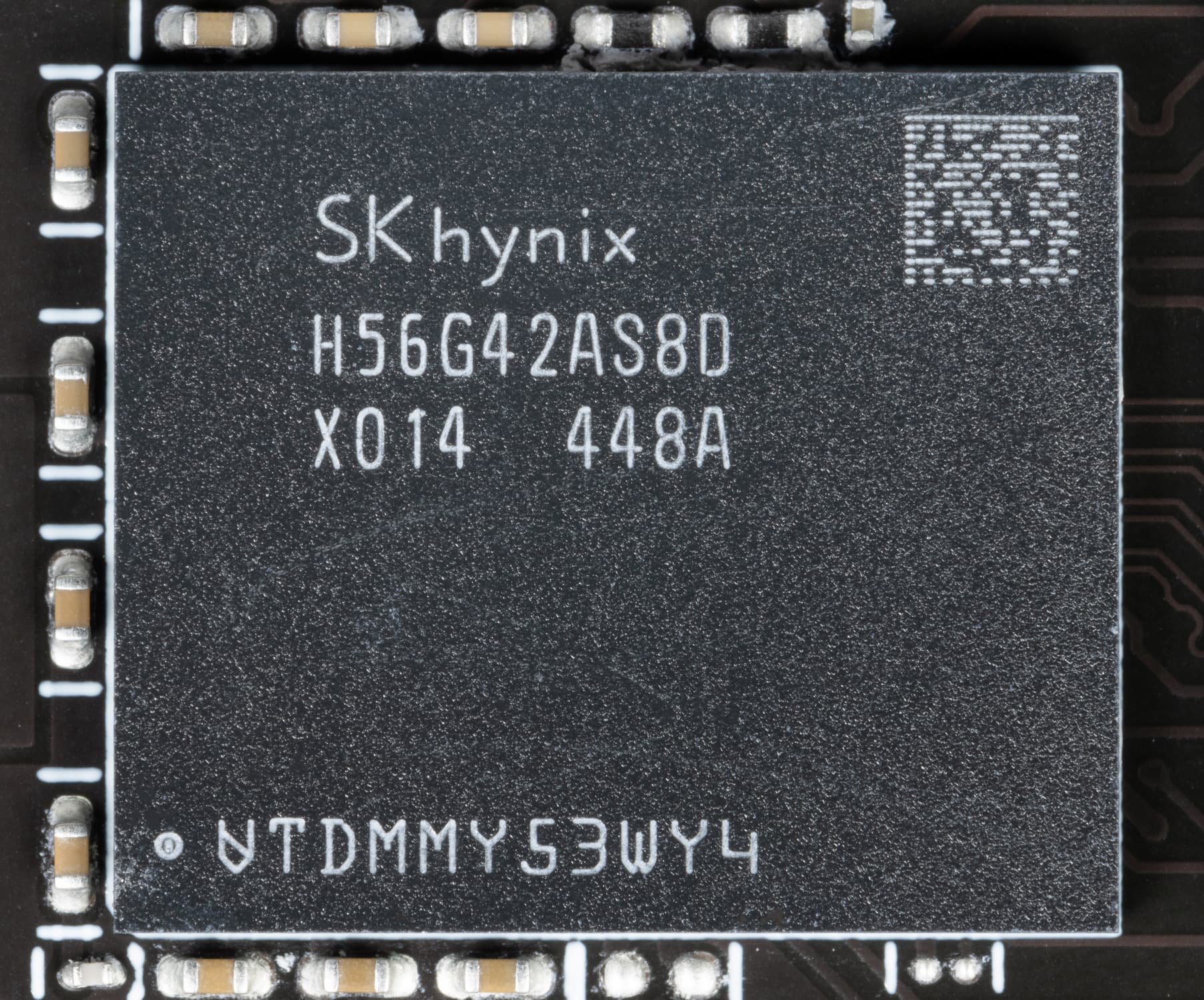 Карта имеет 16 ГБ памяти GDDR6 SDRAM, размещенной в 8 микросхемах по 16 Гбит (по 4 на каждой стороне PCB) . Микросхемы памяти SK hynix (H56G42AS8D-X014) рассчитаны на номинальную частоту работы в 2500 МГц (эффективная ПСП 20 ГТ/с, или 20 Гбит/с).