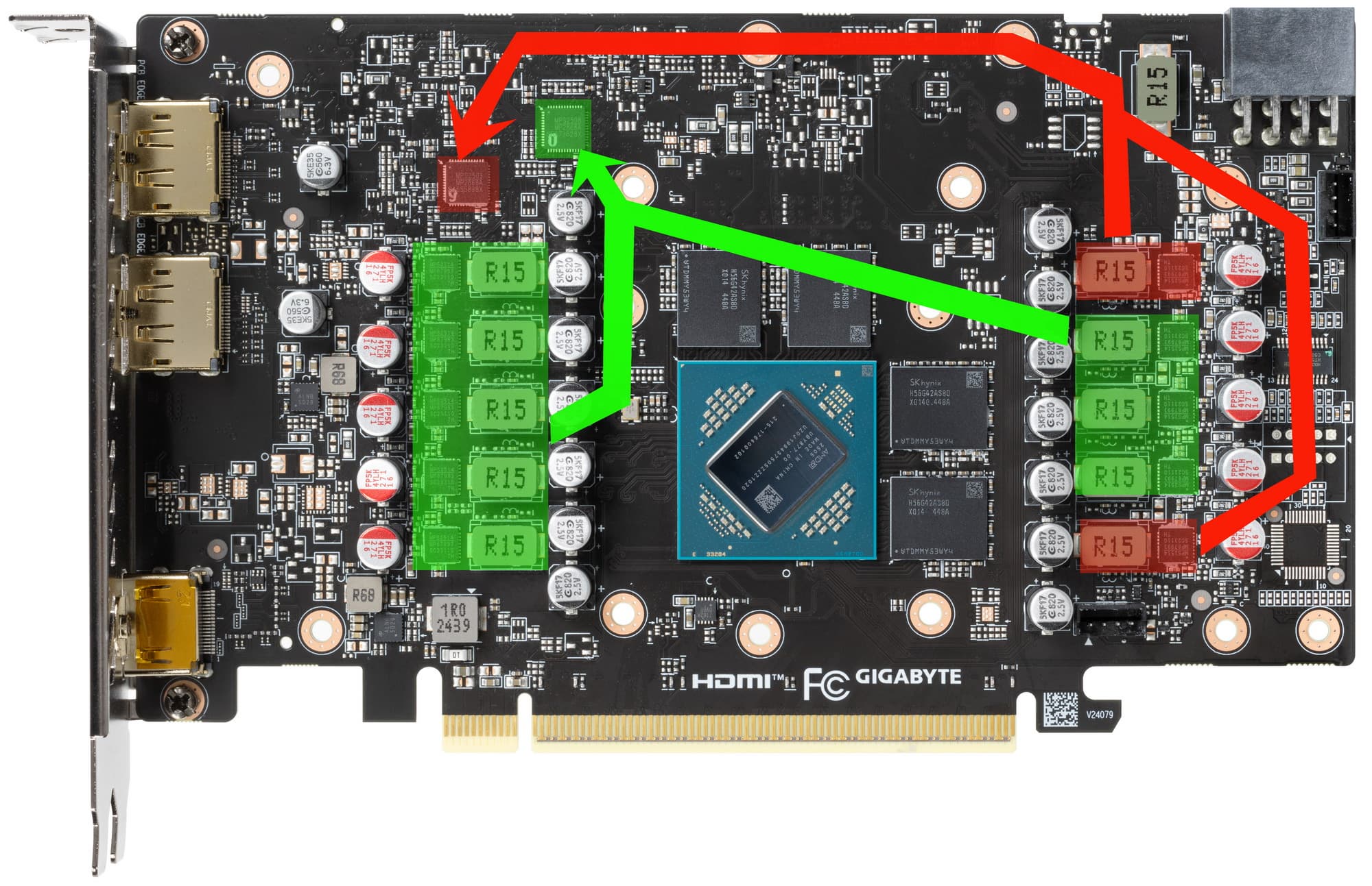 Суммарное количество фаз питания у карты Gigabyte — 10 (8+2).