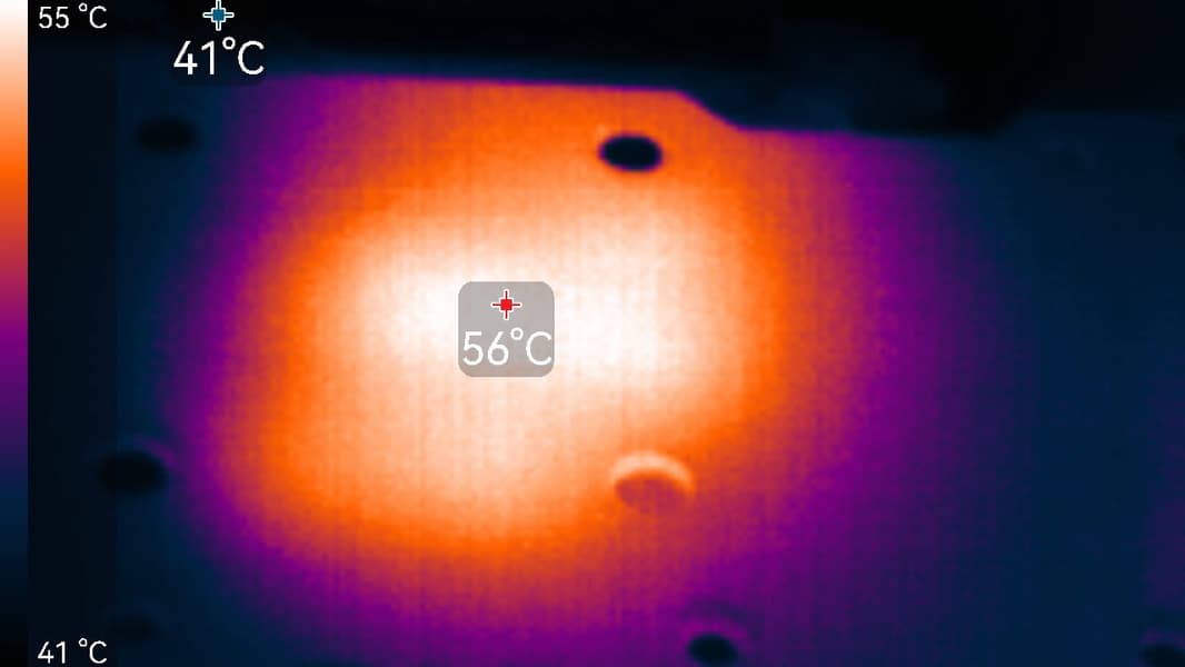 Максимальный нагрев наблюдался в центральной части PCB и около гнезда питания.
