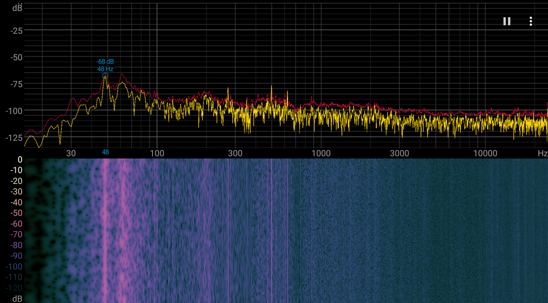 Аудиозапись шума под нагрузкой — здесь. Спектрограмма шума — ниже.