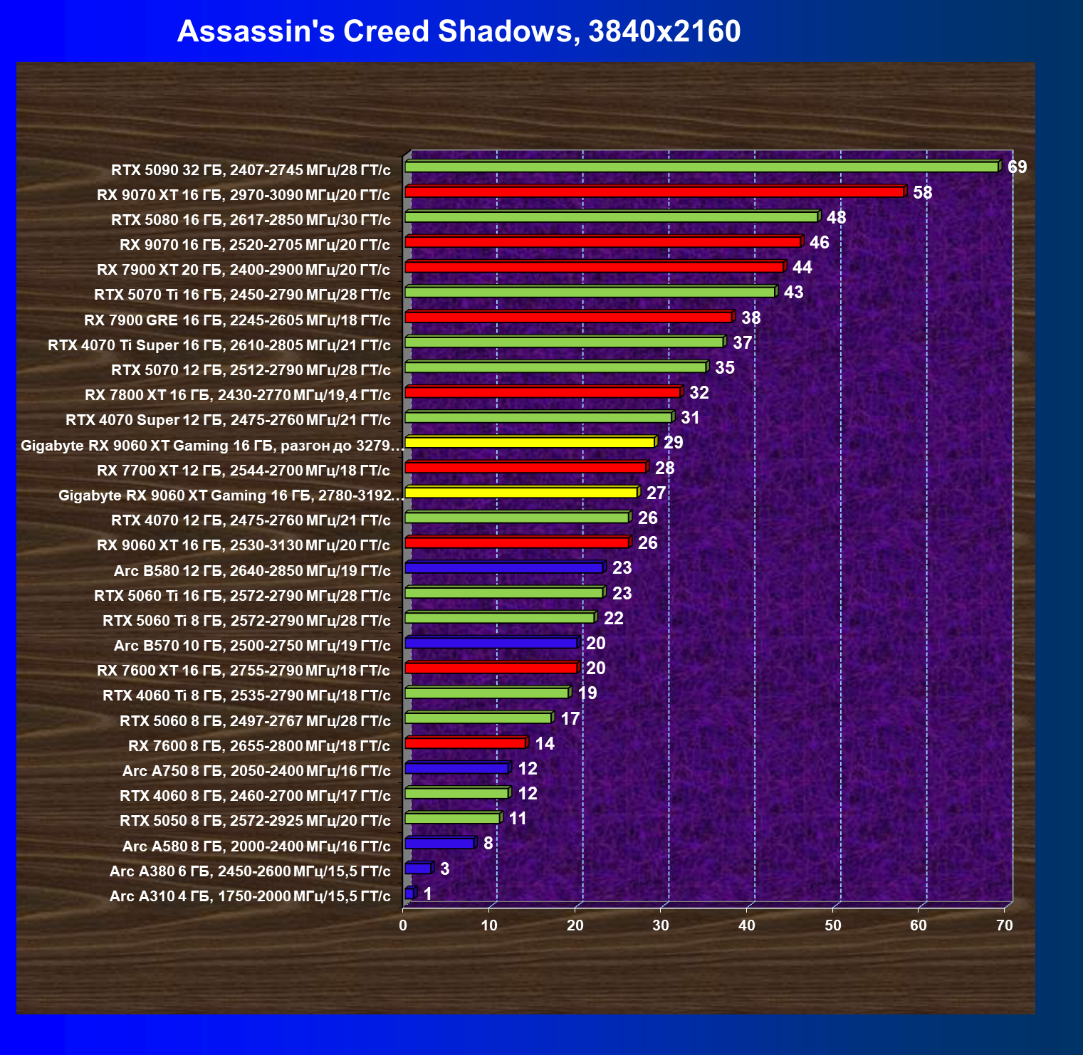 | 21 | Arc B580 12 ГБ, 2640—2850 МГц/19 ГТ/с | 1678 | 541 | 31 000 |