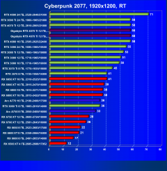 | 20 | RX 6950 XT 16 ГБ, 2310—2525/18000 | 54 | 450 | 83 100 |