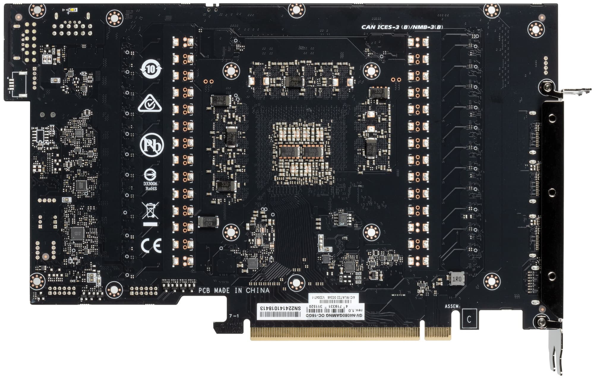 Карта имеет стандартный набор видеовыходов: три DP 1.4a и один HDMI 2.1. Производитель гарантирует прочность и качество печатной платы на высоком уровне.