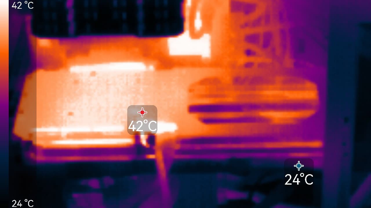 Максимальный нагрев наблюдался около блока VRM и микросхем памяти.