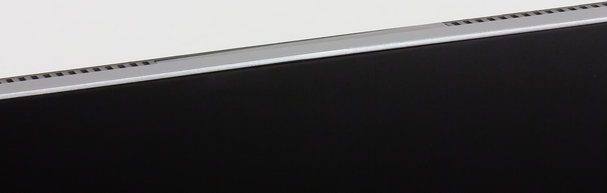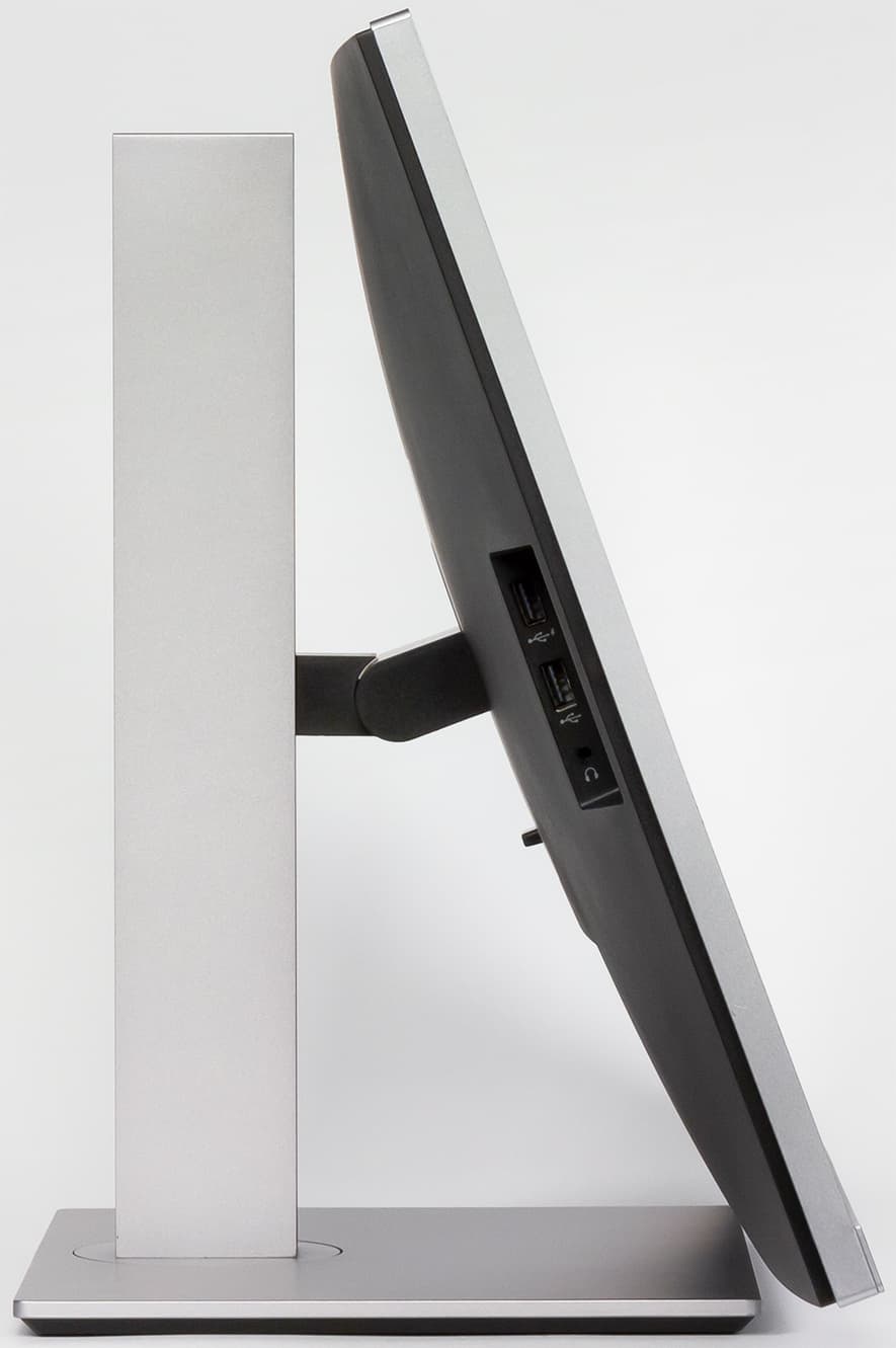 На нижнем и на верхнем торцах блока экрана есть вентиляционные решетки. Разъем питания и большинство интерфейсных разъемов размещены в неглубокой нише на задней панели и ориентированы назад. Там же находится и разъем для кенсингтонского замка. Подключаться к этим разъемам в обычном положении блока экрана неудобно, но его можно повернуть в портретную ориентацию, что существенно облегчает доступ к разъемам. Два USB-порта и выход на наушники находятся в отдельной нише близко к левому торцу для удобства подключения наушников и USB-устройств. На верхнем торце по центру есть выдвижная веб-камера.