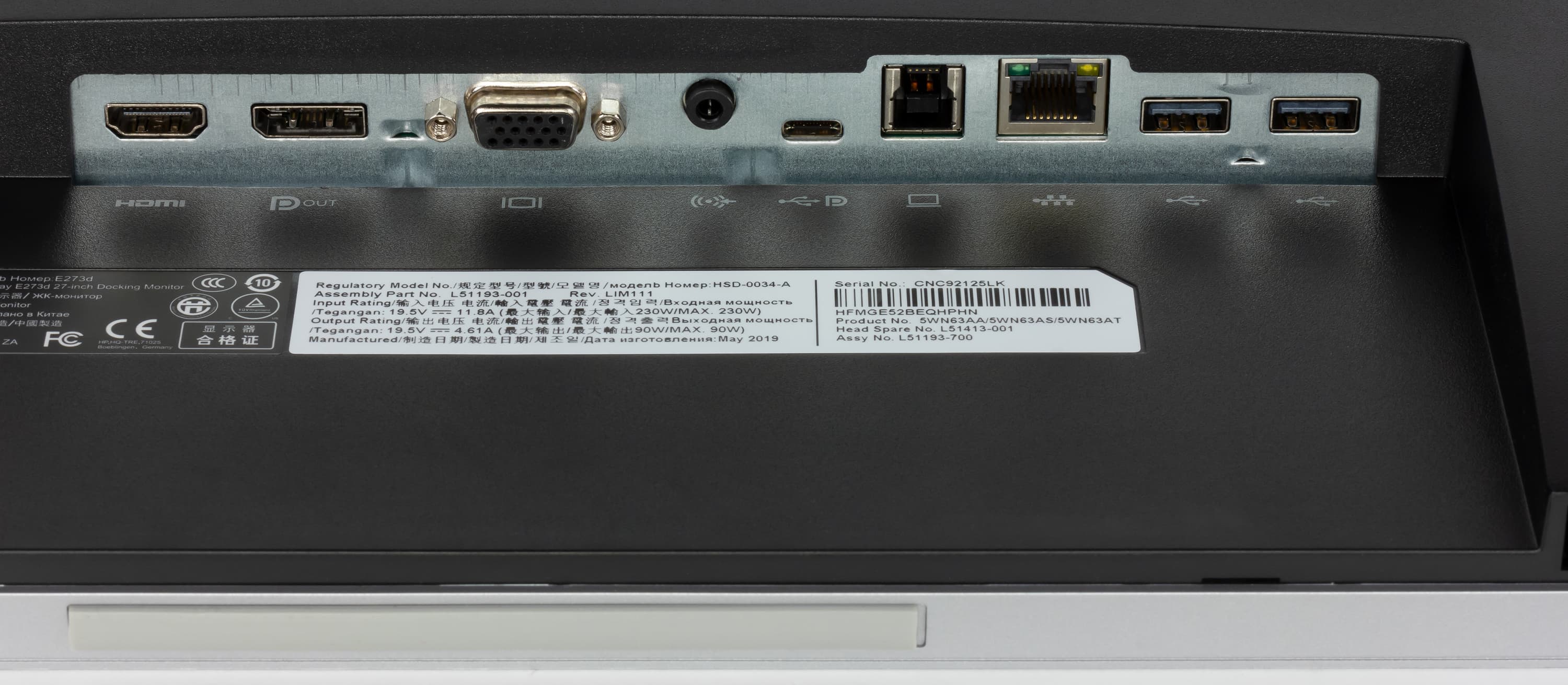 HP EliteDisplay E273d имеет аккуратный дизайн монитора, предназначенного для работы. Монитор оснащен богатым набором интерфейсов, позволяющих превратить его в полноценную док-станцию для ноутбука. При этом доступ ко всей периферии, вывод звука и видео, а также зарядка могут обеспечиваться при подключении всего одним кабелем USB-C. В целом этот монитор можно считать универсальным, пригодным для выполнения офисной работы, для проведения видеоконференций, для игр и для просмотра кино.