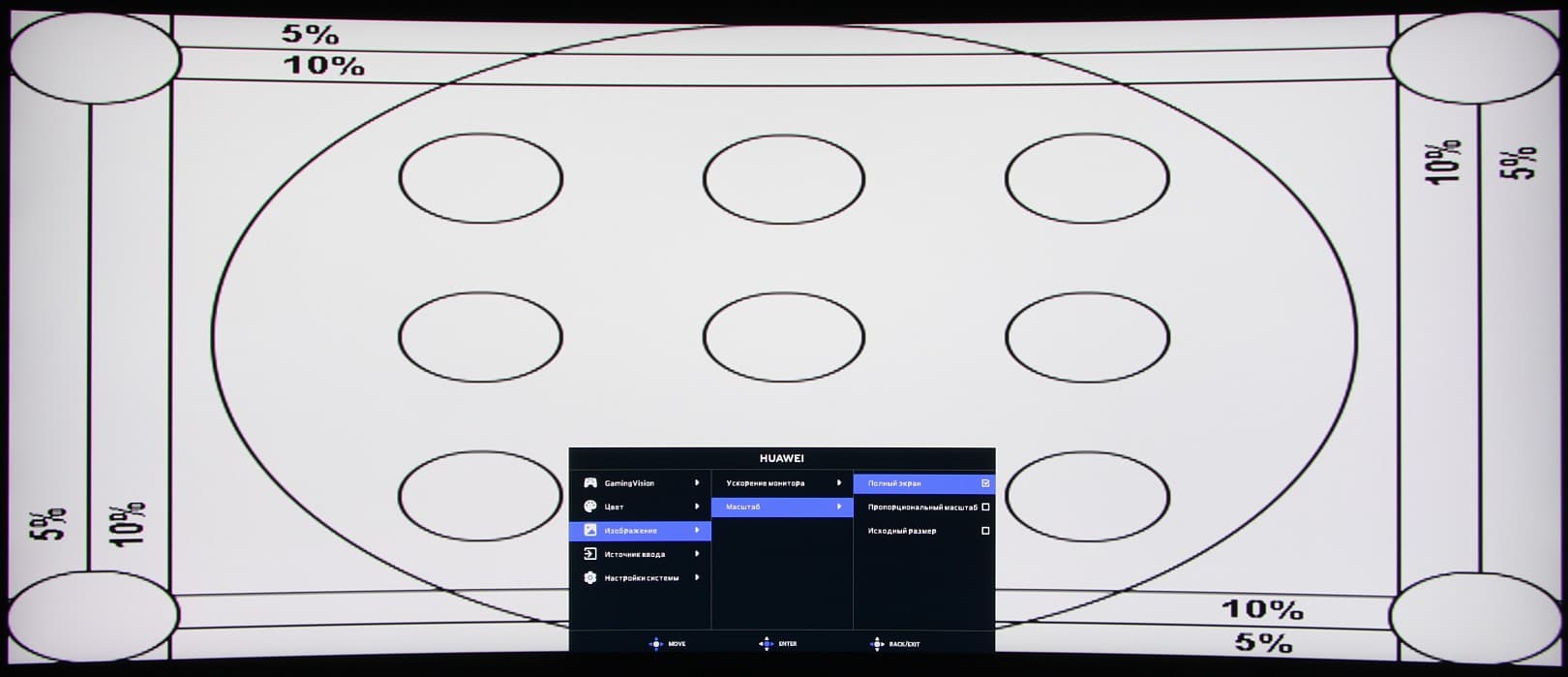 Навигация удобная, так как все делается только джойстиком, не нужно переносить палец на кнопки, к тому же списки зациклены. При настройке изображения меню остается на экране — это несколько мешает оценке вносимых изменений. Настраиваются уровень прозрачности фона и задержка автоматического выхода из меню. Чтобы предотвратить нежелательное изменение настроек, можно включить блокировку джойстика. Присутствует русская версия экранного меню.