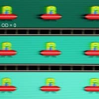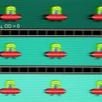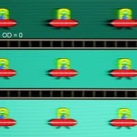 Для наглядного представления о том, что на практике означает такая скорость матрицы, и какие могут быть артефакты от разгона, приведем серию снимков, полученных с помощью движущейся камеры. Такие снимки показывают, что видит человек, если он следит глазами за двигающимся на экране объектом. Описание теста приведено тут, страница с самим тестом тут. Отметим, что получить хорошие по качеству снимки в этом тесте в случае изогнутого монитора сложно. Использовались рекомендованные установки (скорость движения 960, 990, 1000 или 1008 пиксель/с, то есть на целое число пикселей за кадр), выдержка 1/15 с, на фотографиях указаны значения частоты обновления, а также настройки Ускорение монитора (сокращено до OD — от Overdrive).