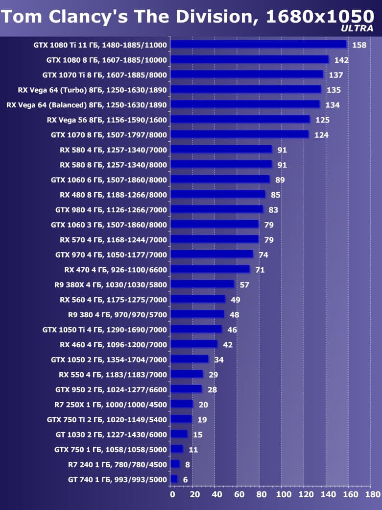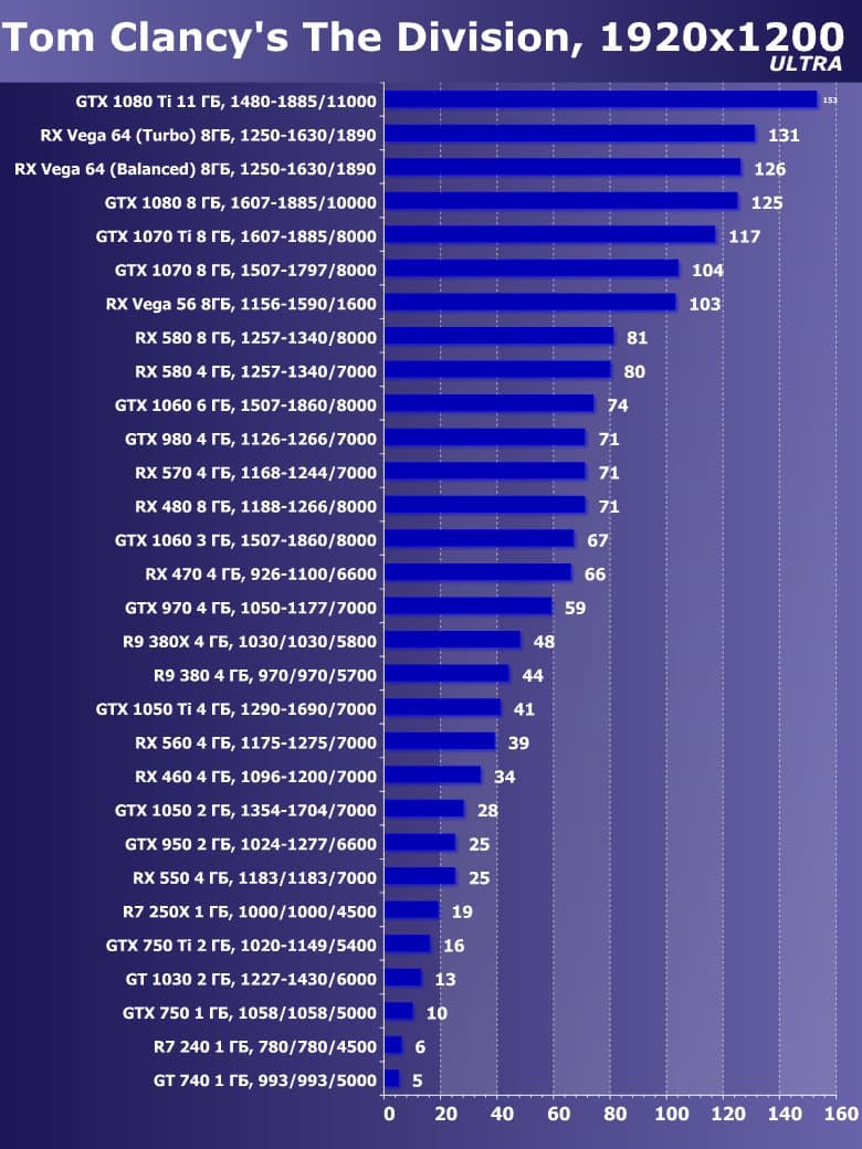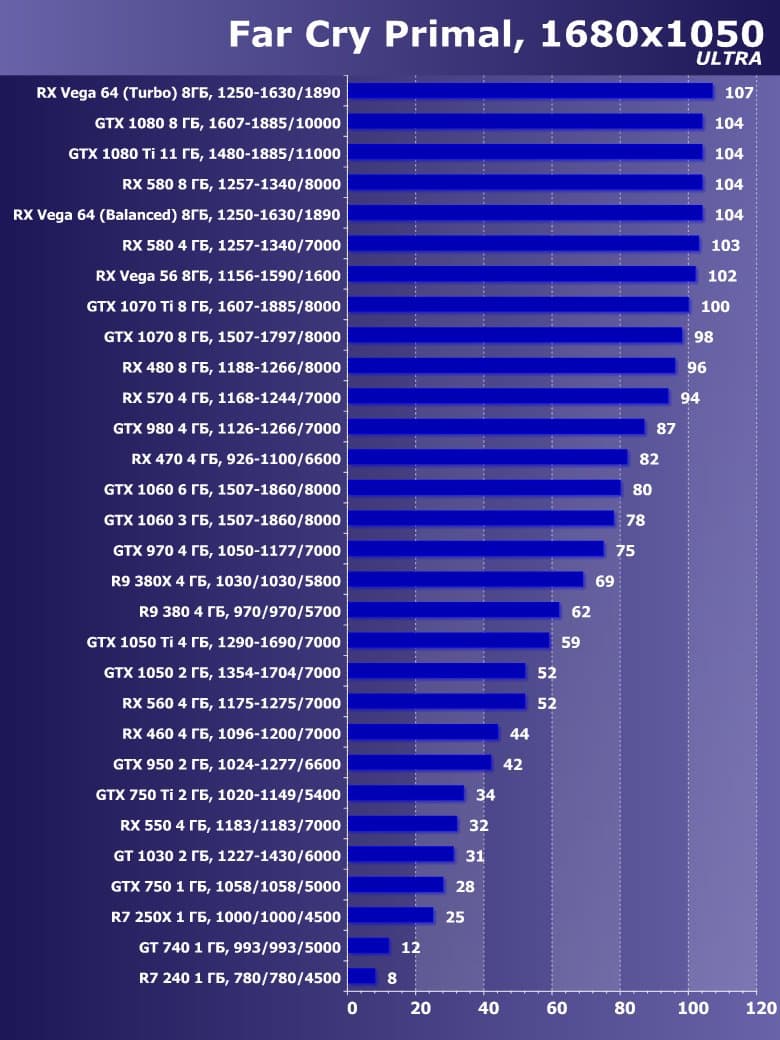 | 15 | GTX 1060 3 ГБ, 1507—1860/8000 | 1230 | 492 | 25 000 |
