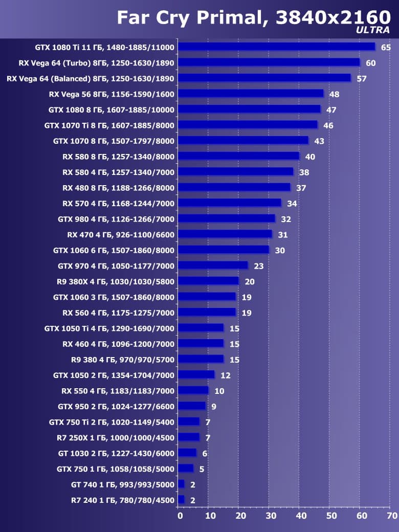 | 21 | RX 460 4 ГБ, 1096—1200/7000 | 720 | 655 | 11 000 |