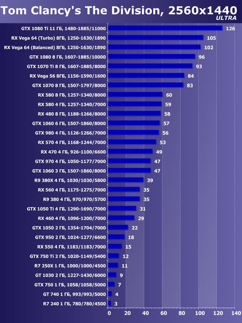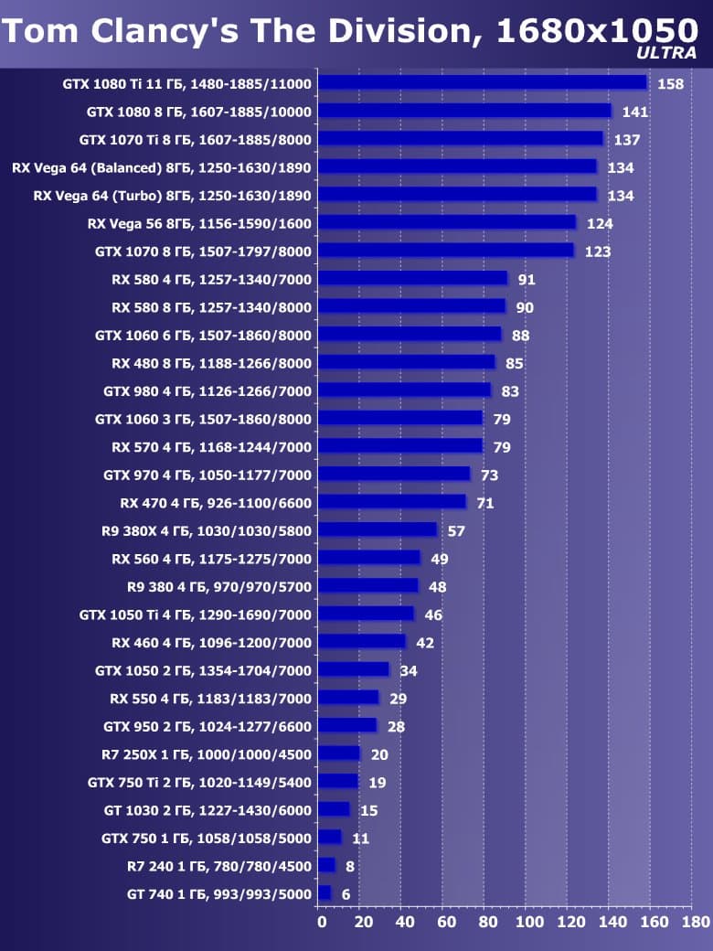 | 15 | GTX 1060 3 ГБ, 1507—1860/8000 | 1230 | 665 | 18 500 |