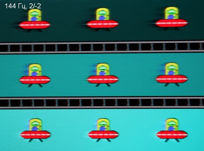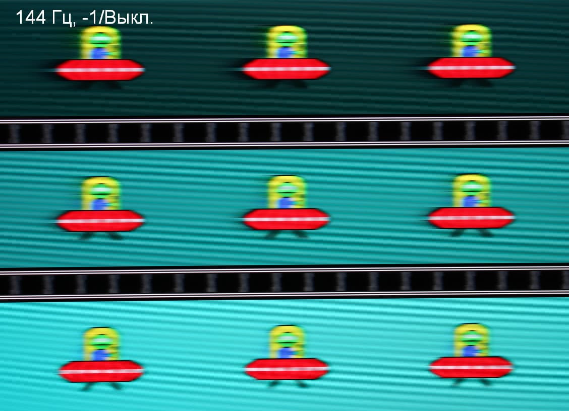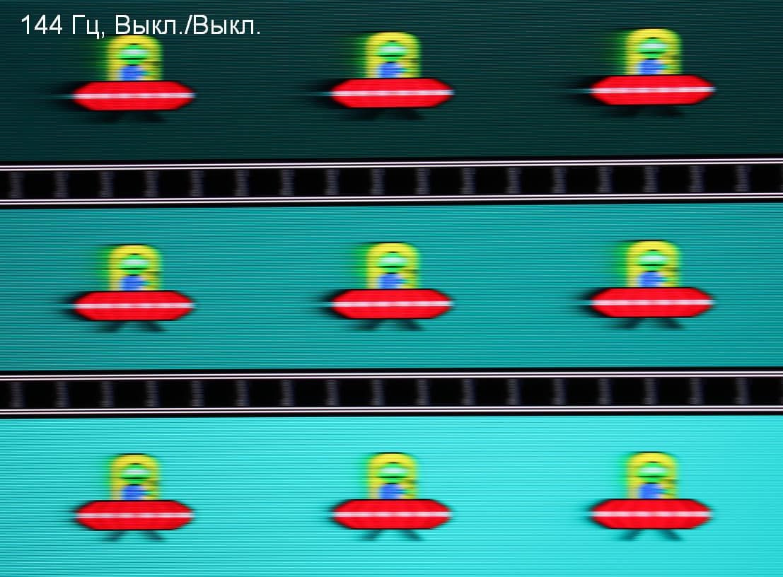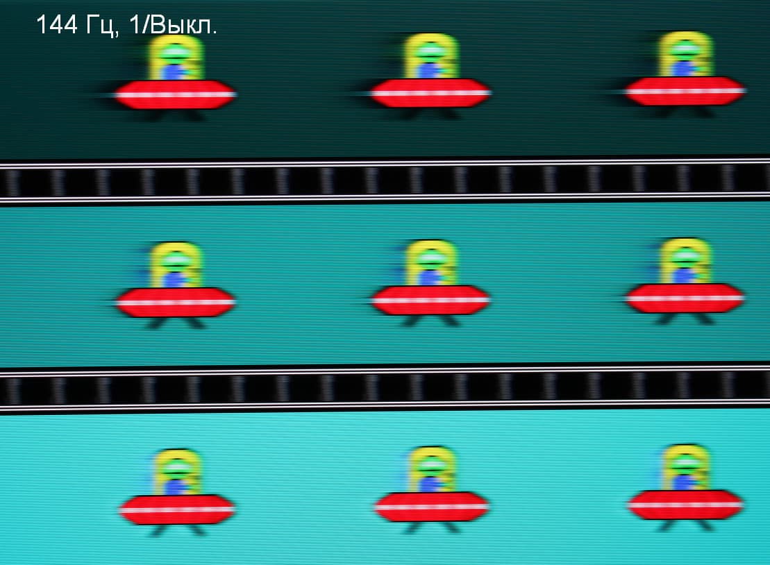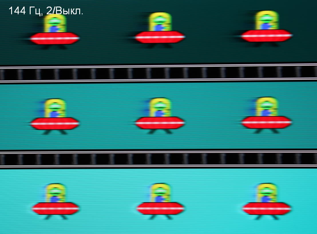 Четкость в движении действительно повышается (и производитель может указывать невероятные 1 мс с оговоркой, что это характеристика четкости в движении — MPRT), но на динамичной картинке появляются артефакты, о чем будет рассказано ниже, а из-за мерцания с частотой максимум в 144 Гц данный режим рекомендуется использовать с осторожностью, так как мерцание может приводить к повышенной утомляемости глаз. Также отметим, что по мере увеличения значения MBR длительность темного промежутка увеличивается, что приводит с снижению яркости изображения.
