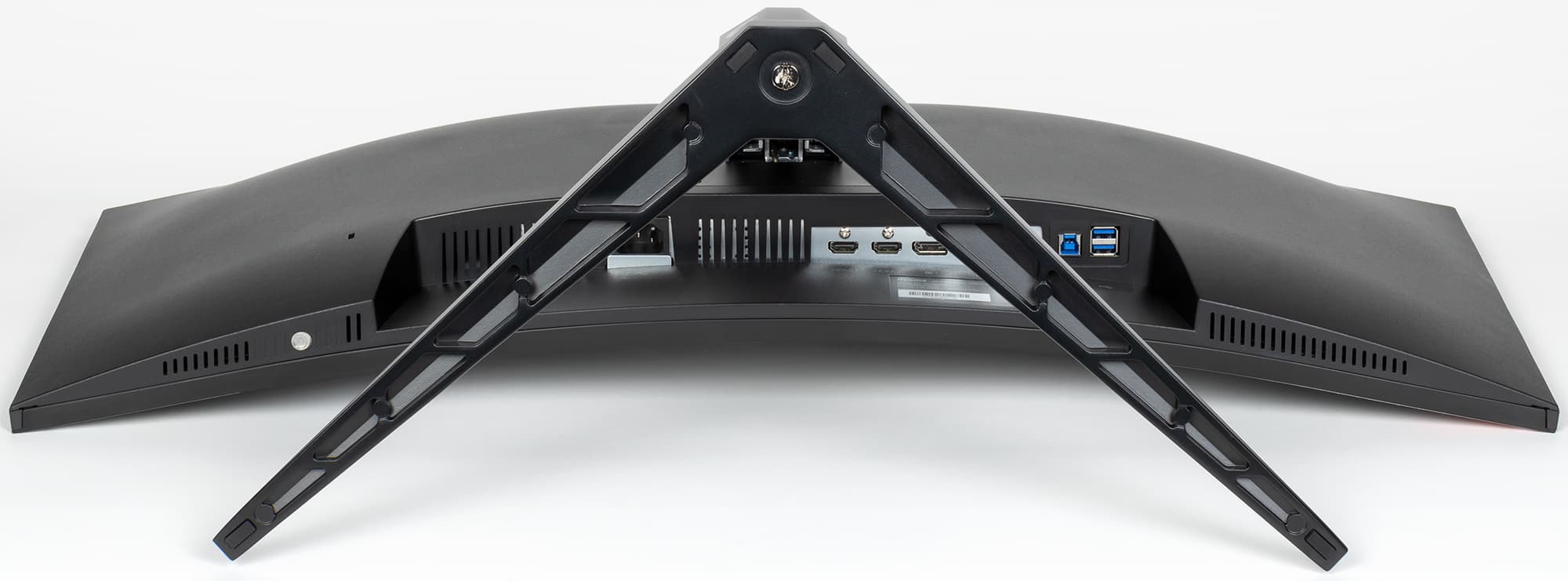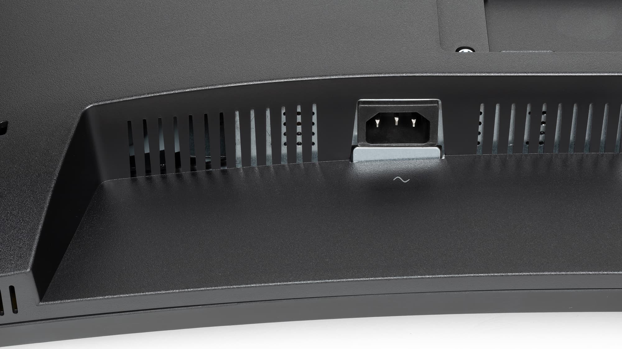 Все интерфейсные разъемы и разъем питания расположены в незамкнутой нише на задней панели и ориентированы вниз. На задней панели в верхней части, в нише с разъемами и на нижнем торце есть несколько вентиляционных решеток. За решеткой в верхней части расположены встроенные в монитор крохотные громкоговорители со сдвоенными круглыми диффузорами. Громкоговорители установлены в боксах, закрепленных на упругих стойках.