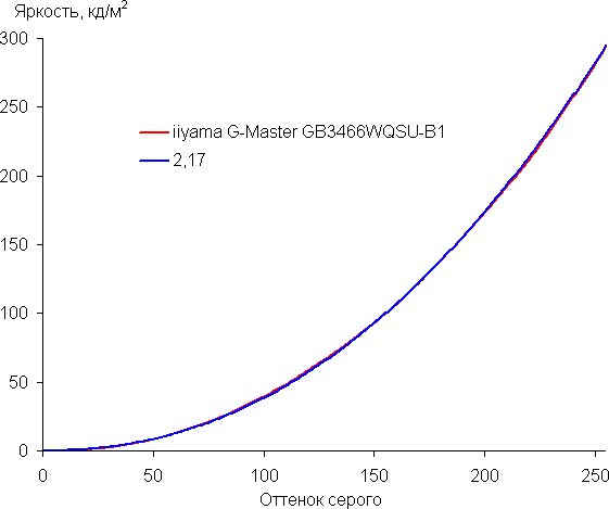Аппроксимация полученной гамма-кривой дала показатель 2,17, что чуть ниже стандартного значения 2,2. При этом аппроксимирующая степенная функция мало отклоняется от реальной гамма-кривой: