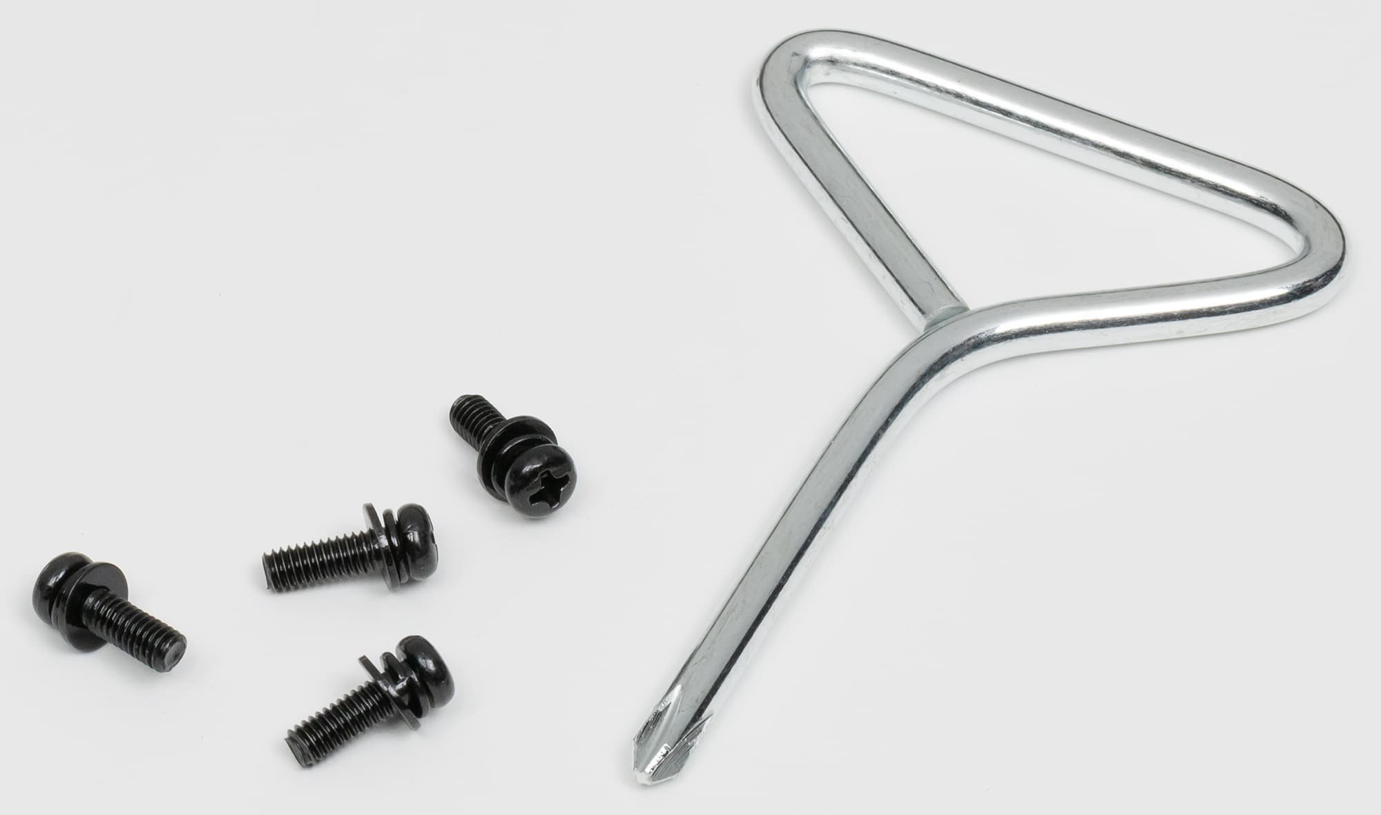 Подставка к блоку экрана крепится на четырех винтах — производитель даже приложил крестовую отвертку.