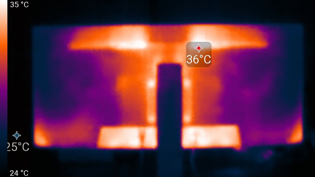 Нагрев монитора можно оценить по снимкам с ИК-камеры, полученным после долговременной работы монитора на максимальной яркости в помещении с температурой примерно 24 °C.