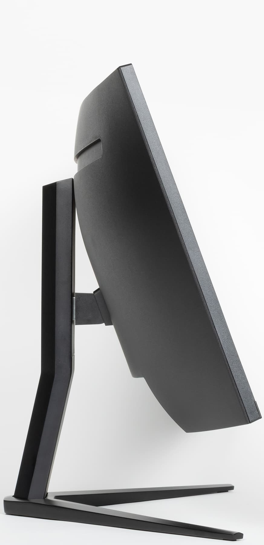 Плоскость экрана изогнута по цилиндру так, что правый и левый край немного выдвинуты вперед. Заявленный радиус изгиба равен 1,5 м. Равномерность кривизны экрана у данной модели хорошая, правда в вертикальной полосе шириной порядка 10-15 см у правого и левого края экран практически плоский, но это характерно для всех изогнутых ЖК-экранов. Спереди экран выглядит как монолитная поверхность, ограниченная снизу неширокой планкой, а по периметру — узкой окантовкой. Выведя изображение на экран, можно увидеть, что на самом деле между внешними границами экрана и собственно областью отображения есть неширокие поля.