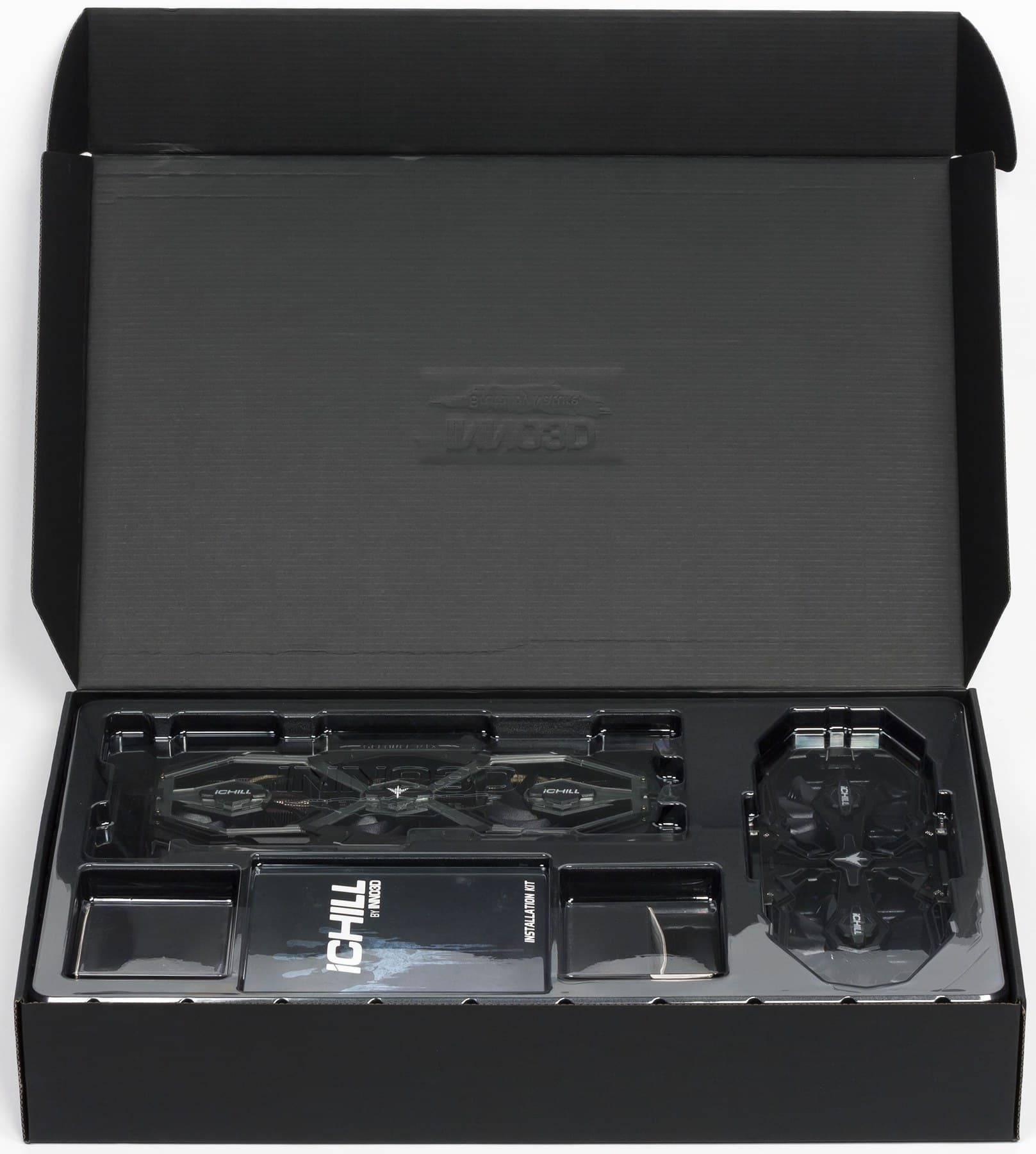 Базовый комплект поставки должен включать руководство пользователя, диск с драйверами и утилитами. Перед нами базовый комплект плюс вышеупомянутый дополнительный кожух с двумя вентиляторами, бонусы в виде фирменного коврика для мыши, лицензий на 3DMark и VRMark.